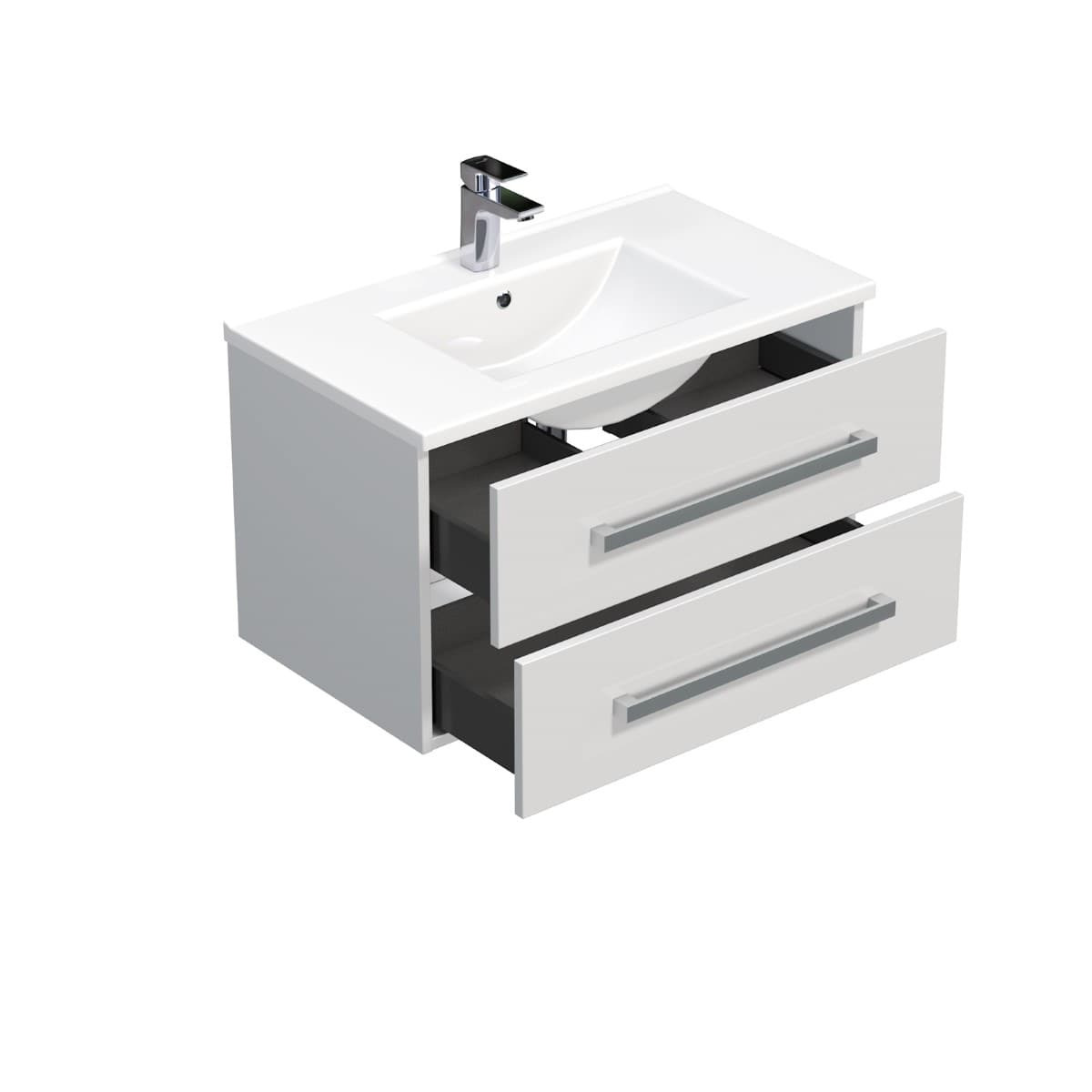 - Meuble de salle de bain suspendu 80x53x46 cm, blanc brillant.