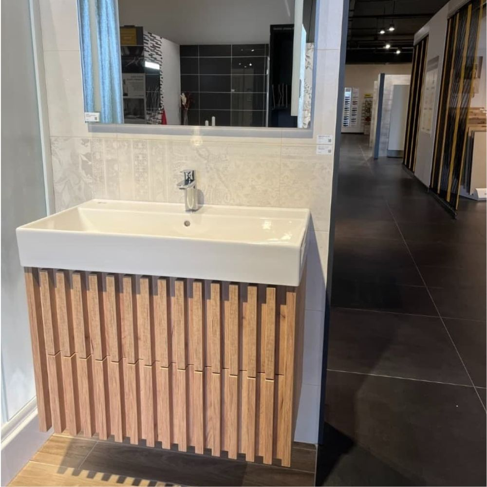 Nous vous présentons notre nouveauté, le meuble de salle de bain SAT Delano avec lavabo en finition chêne mat. Ce meuble n'est pas seulement un élément pratique et fonctionnel de votre salle de bain, mais apporte également à votre intérieur une touche de design d'intérieur contemporain - lattes verticales.