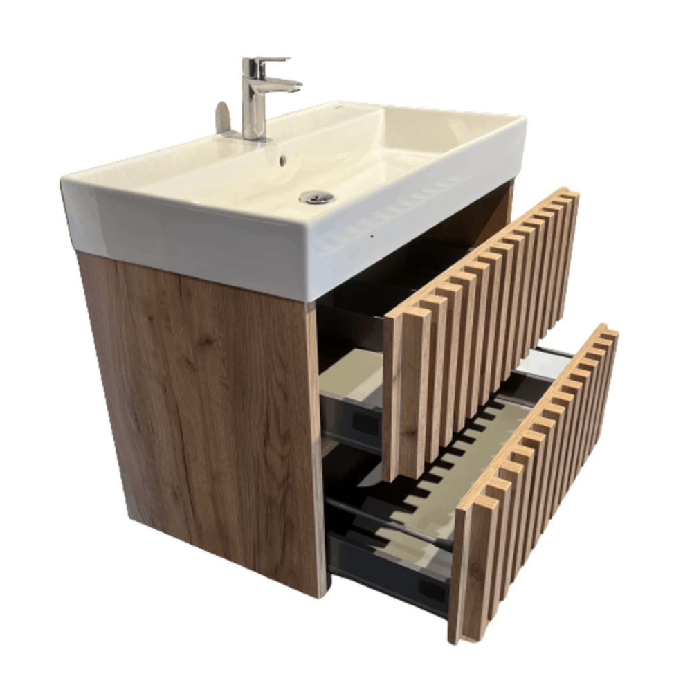 Meuble salle de bain suspendu 60 x 56 x 46 cm avec lavabo décor lattes chêne mat Delano SAT (DELANO60ZDSAT)