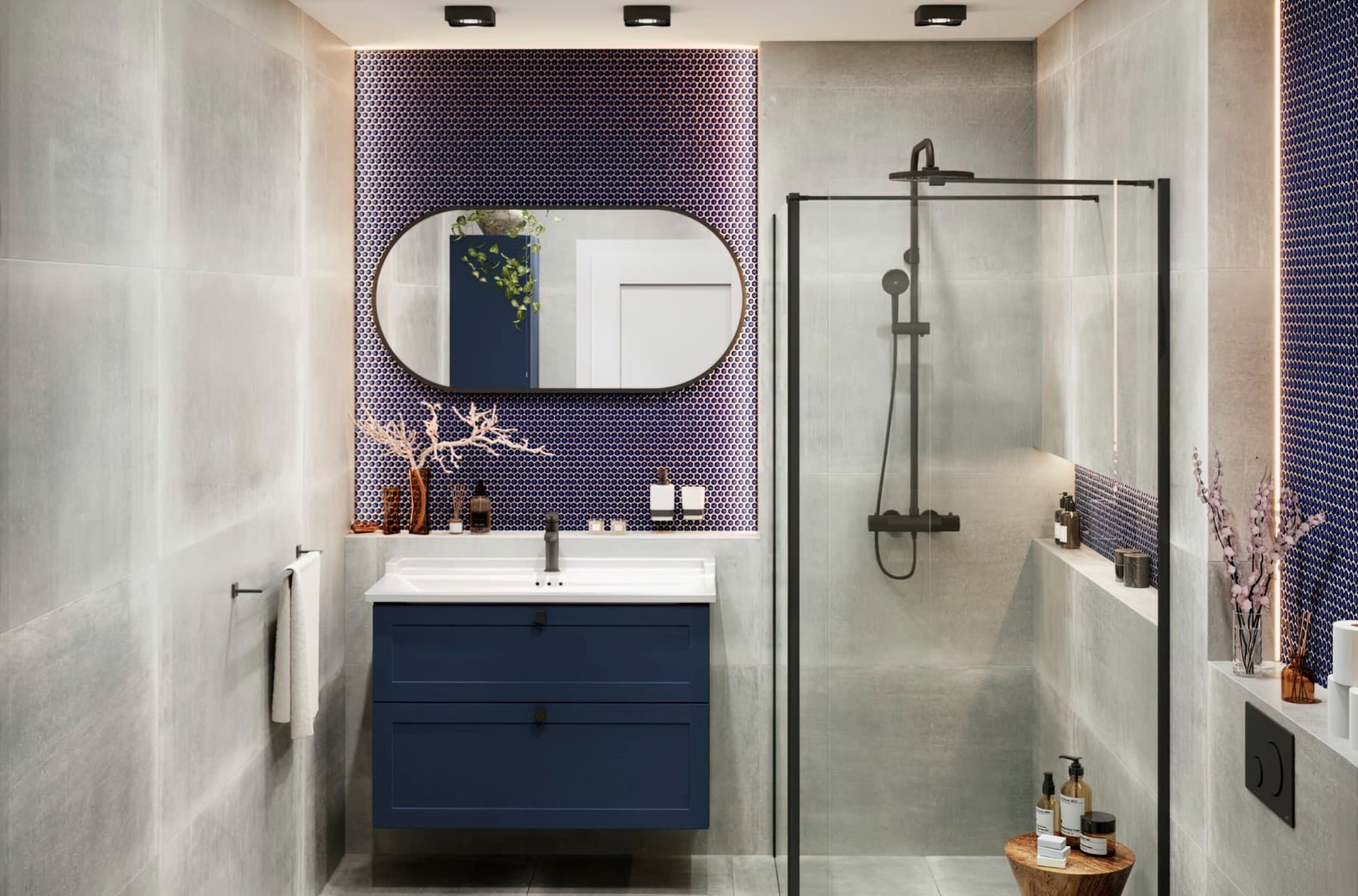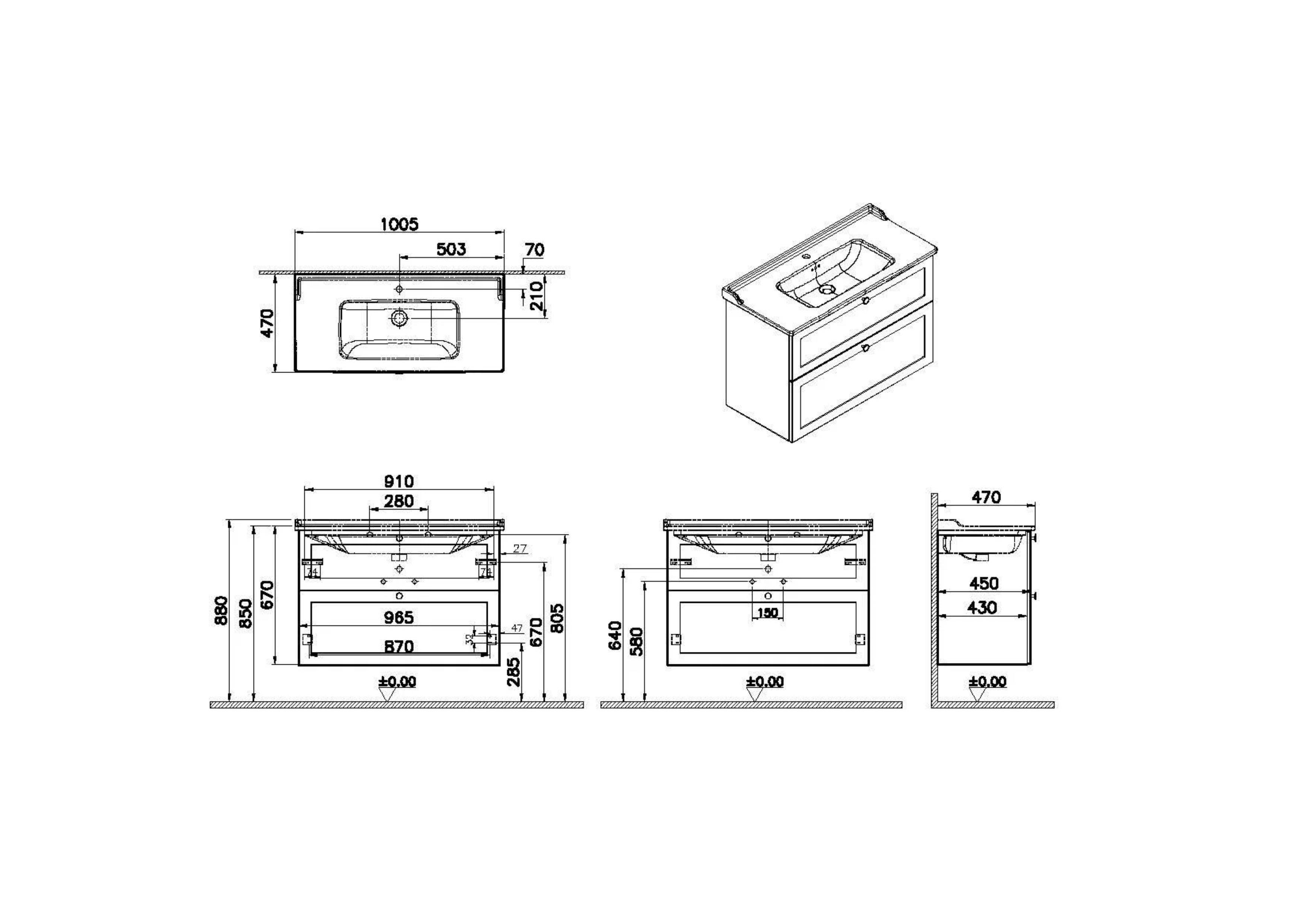 - L'élégance dans les moindres détails - meuble de salle de bain avec lavabo en céramique 100x67x46 de couleur bleu foncé avec poignées noires et système d'ouverture soft close. La couleur bleu foncé mat apporte paix et harmonie à la salle de bain et est ainsi la garantie que votre salle de bain sera un lieu de détente et de bien-être.