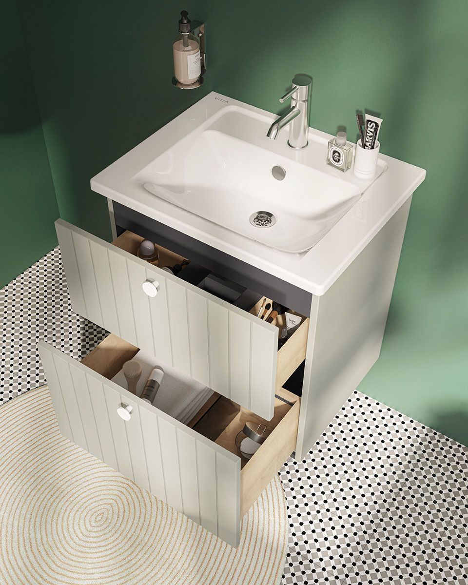 Vous avez une petite salle de bain et souhaitez l'embellir ? La série Vitra Root vous propose la solution parfaite avec le meuble de salle de bain Vitra Root (ROOTG60GINTS).