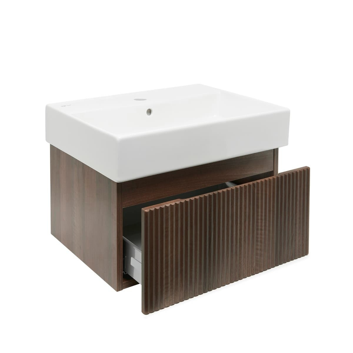 Le meuble de salle de bain SAT Evolution est doté de fraisages verticaux luxueux qui apportent un élément d'élégance unique à la salle de bain.