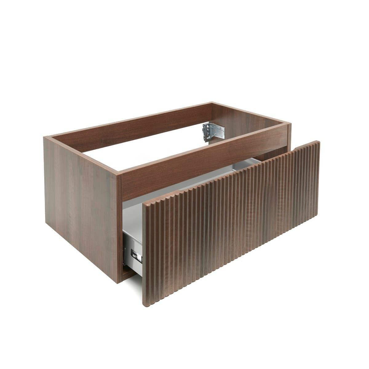 Le meuble de salle de bain SAT Evolution est doté de fraisages verticaux luxueux qui apportent un élément d'élégance unique à la salle de bain.