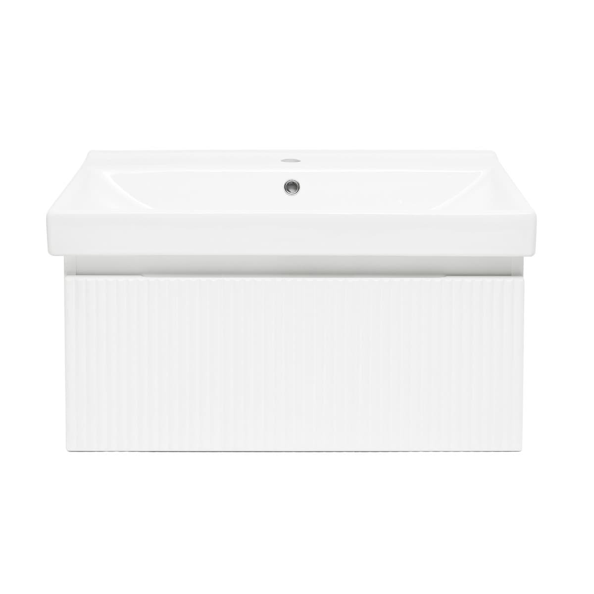Meuble de salle de bain suspendu avec lavabo en céramique de couleur blanche avec surface mate mesurant 78x30x44,8 cm. Surface en style filmé.