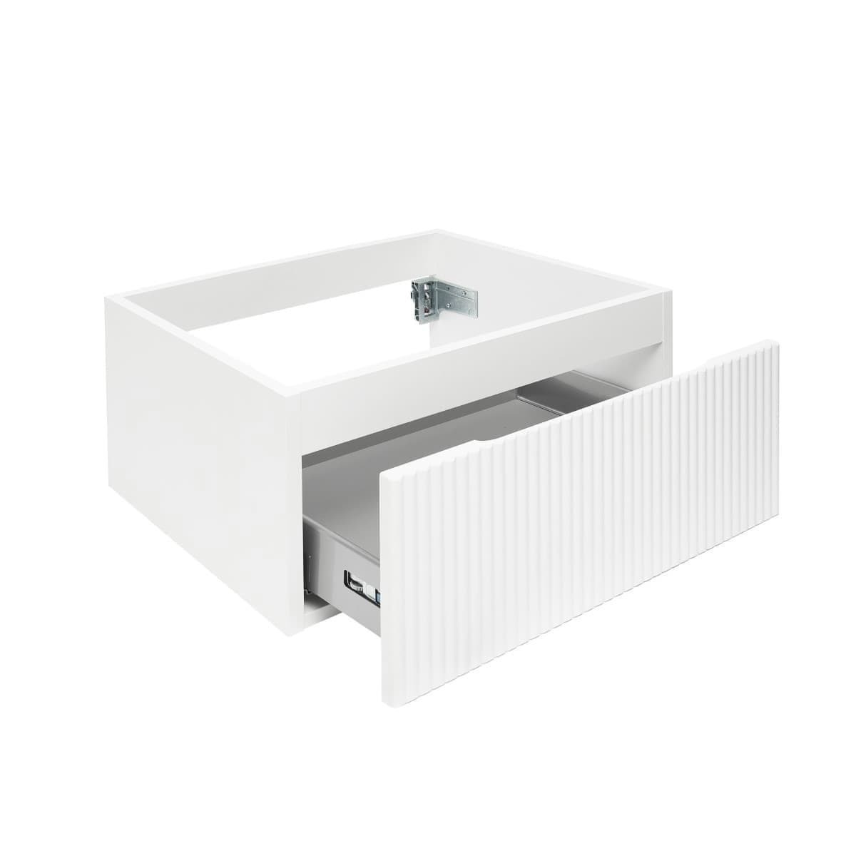 Le meuble est conçu dans un souci de praticité et d'esthétique dans la salle de bain. Le tiroir peut être ouvert en haut ou en bas de la façade du tiroir et offre ainsi un accès pratique à l'espace de rangement.