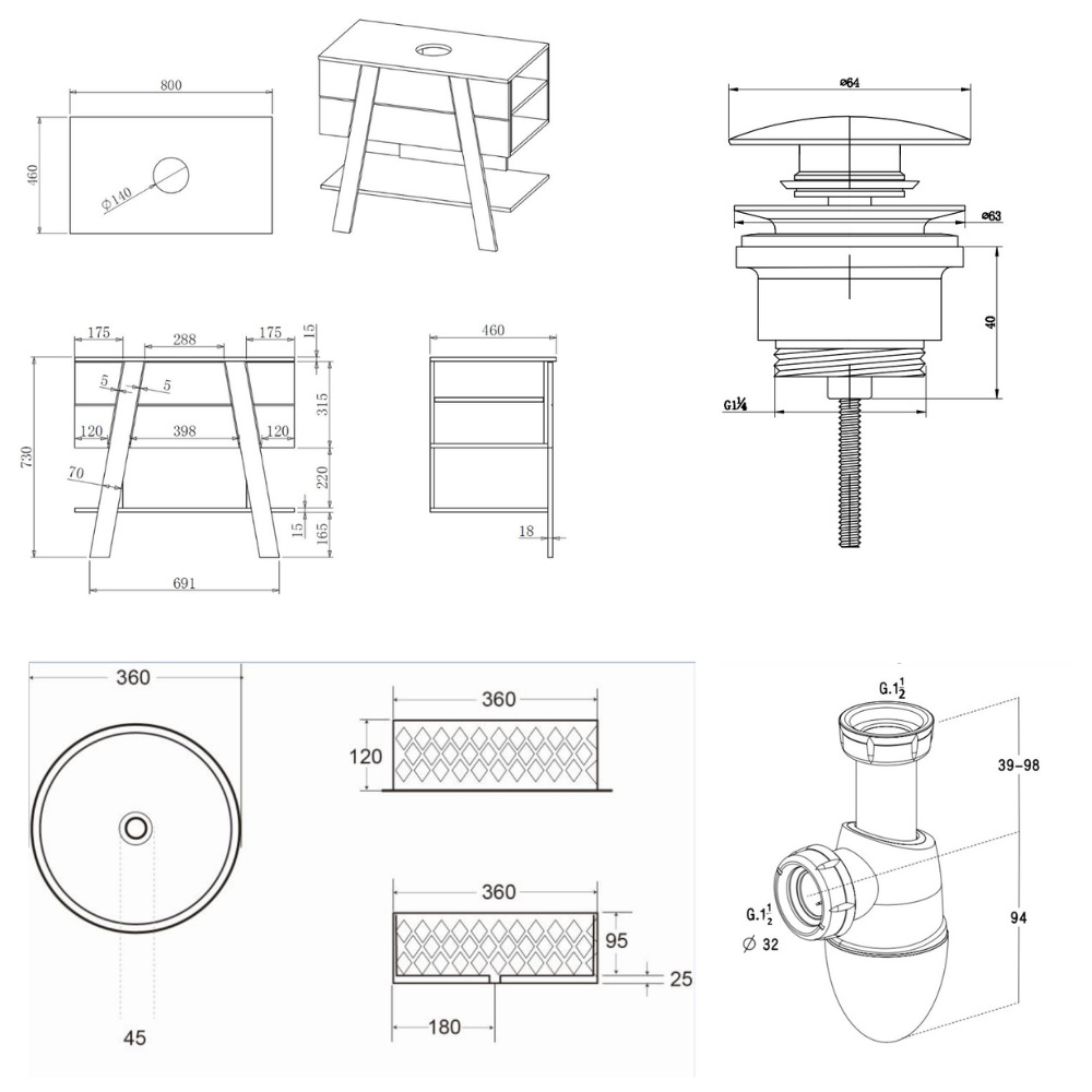 - Équipement : livré sans siphon ni robinetterie.