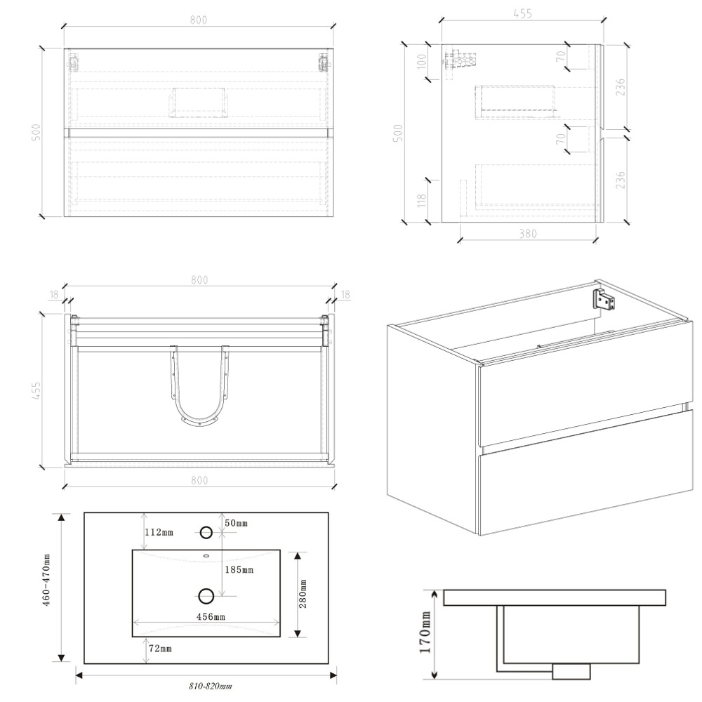 Caractéristiques du set meuble de salle de bain mural 80x50x45,5 cm + lavabo en céramique 81x46 cm, Naturel, bois clair/ blanc (VERONA80SDU3) :