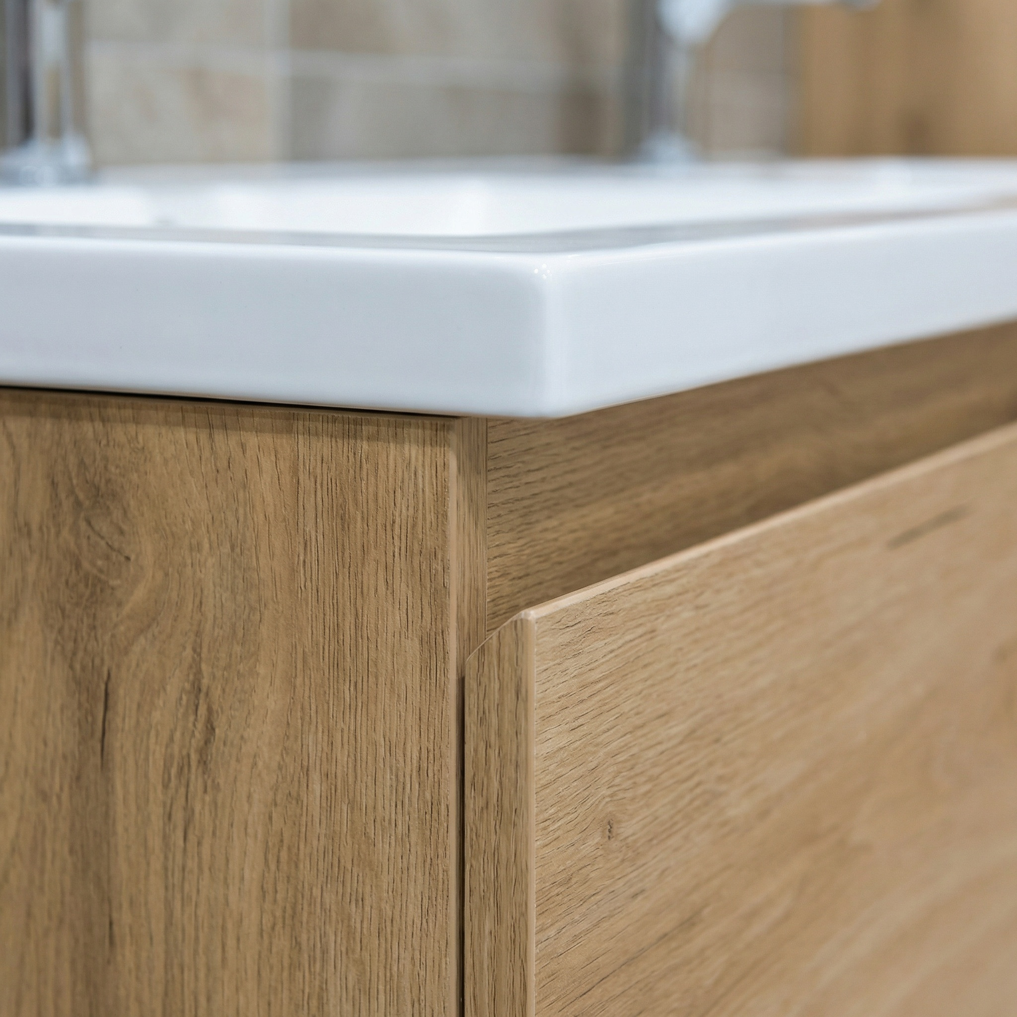 B-Way 119x50x45 cm meuble suspendu + double vasque semi-encastrée en marbre coulé 120x46x27 cm, chêne mat (BWAY2120OAKU)