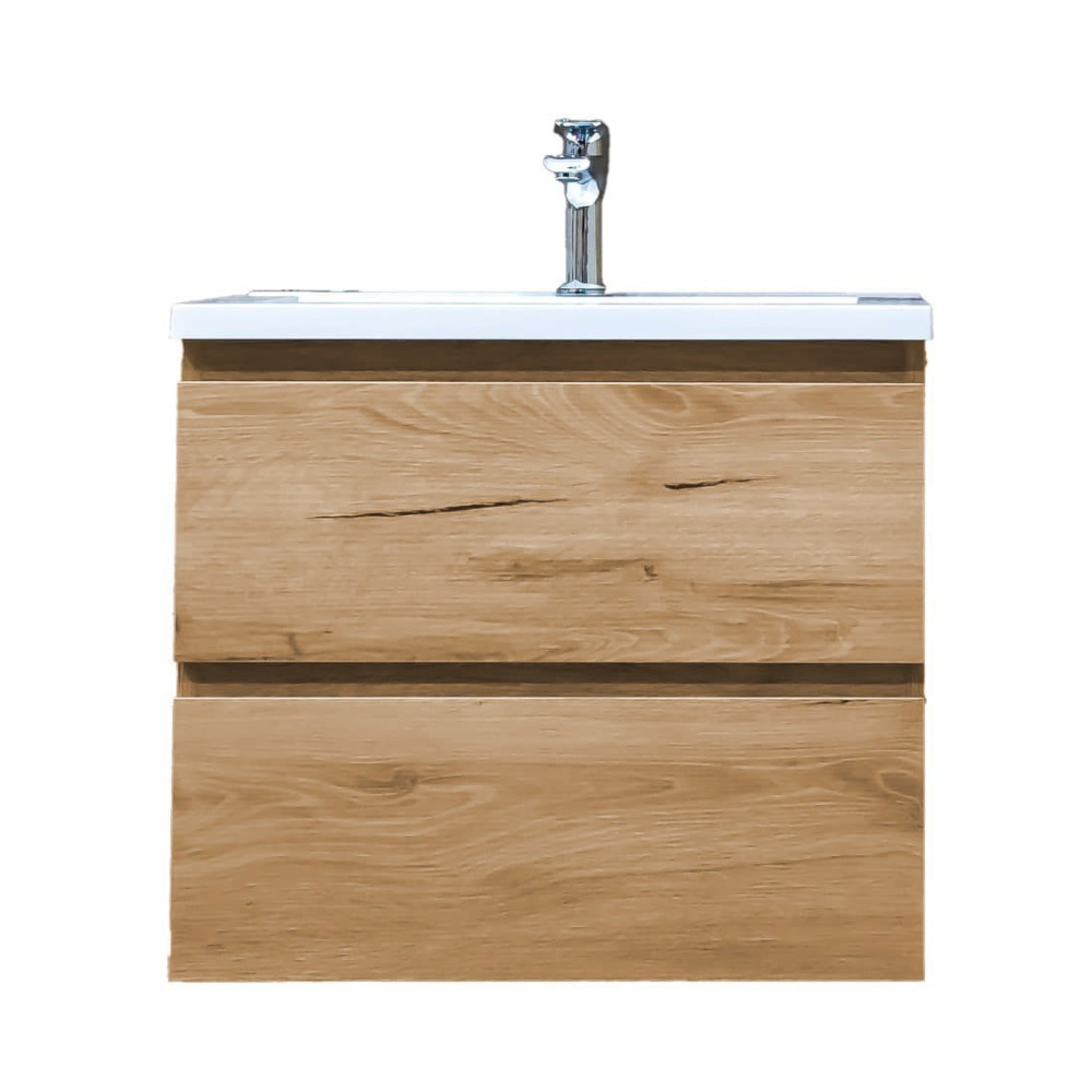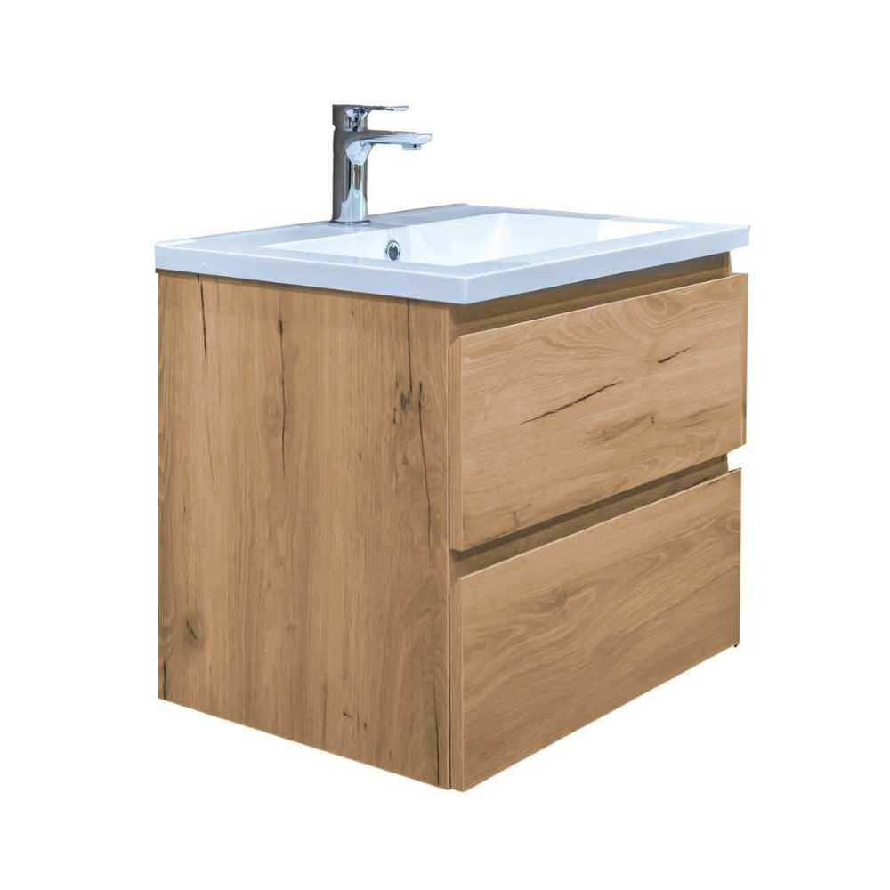 B-Way 59x50x45 cm meuble de salle de bain suspendu 2 tiroirs avec lavabo en marbre coulé, chêne mat (BWAY260OAKU)