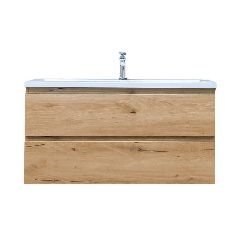 Caractéristiques du meuble de salle de bain suspendu 99x50x45 cm, 2 tiroirs avec lavabo en marbre coulé, Swiss Aqua Technologies B-Way, chêne mat (BWAY2100OAKU) :