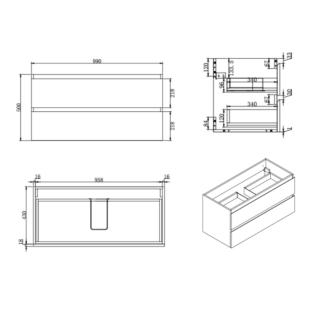 Le tiroir supérieur est conçu pour le passage du siphon afin de conserver un maximum d’espace utile.