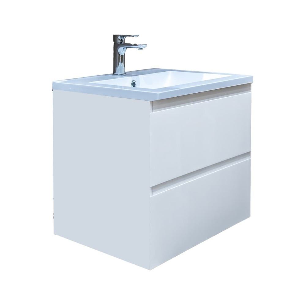 Caractéristiques du meuble de salle de bain suspendu 59x50x45 cm 2 tiroirs avec lavabo en marbre coulé, Swiss Aqua Technologies B-Way, blanc brillant (BWAY260WU) :