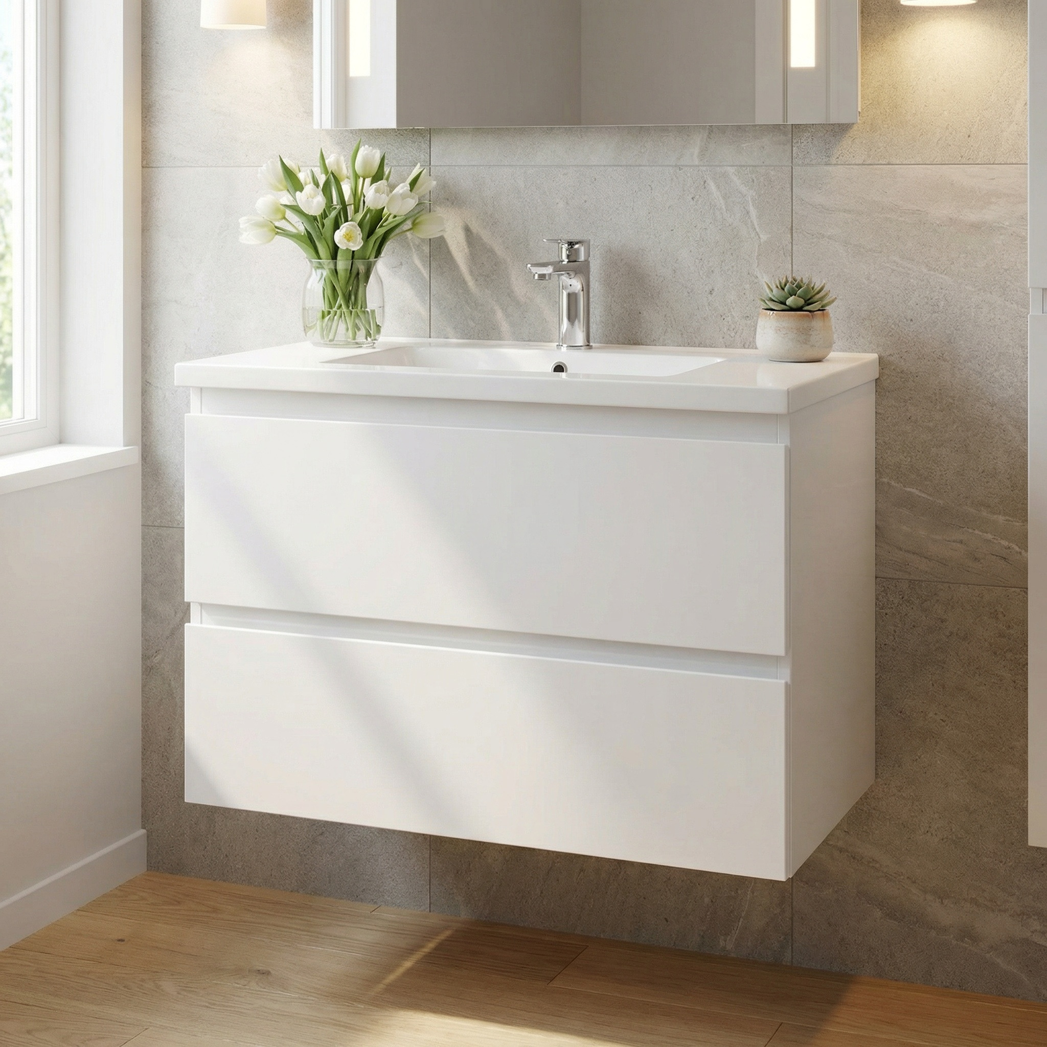 Les deux tiroirs indépendants permettent d’organiser facilement vos produits de toilette et accessoires. La configuration suspendue libère l’espace au sol, facilite le nettoyage et apporte une sensation de légèreté visuelle.