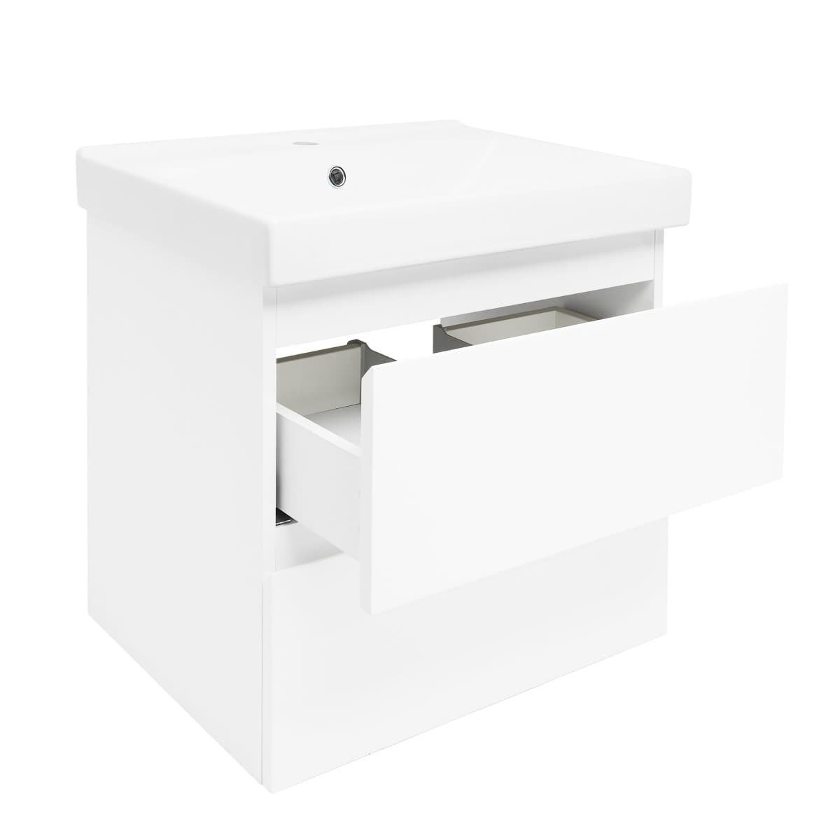 Meuble salle de bain suspendu 59 x 50 x 45 cm avec lavabo céramique blanc brillant – 2 tiroirs – B-Way (BWAY260WU1BI)