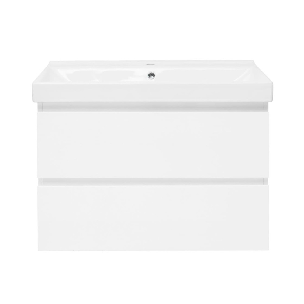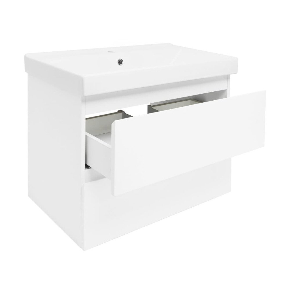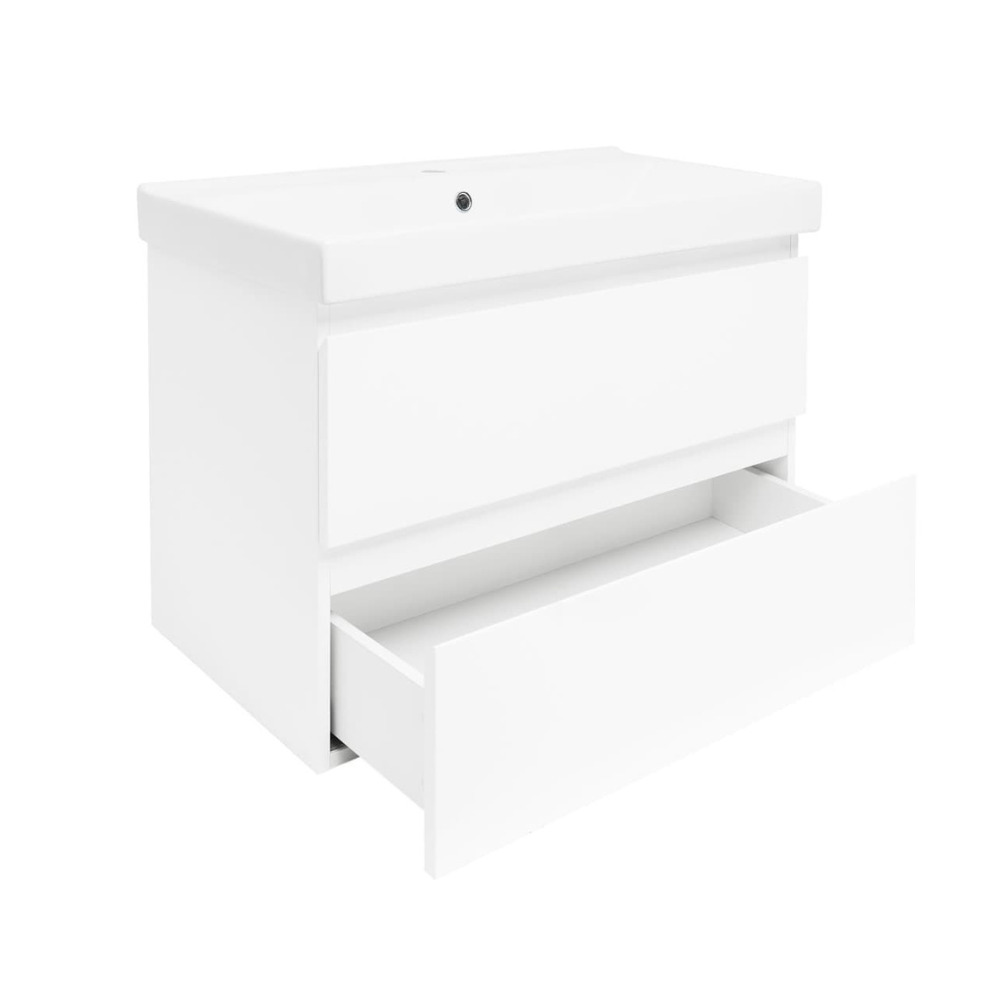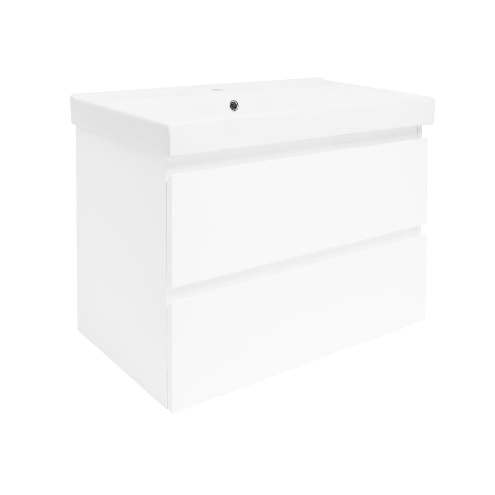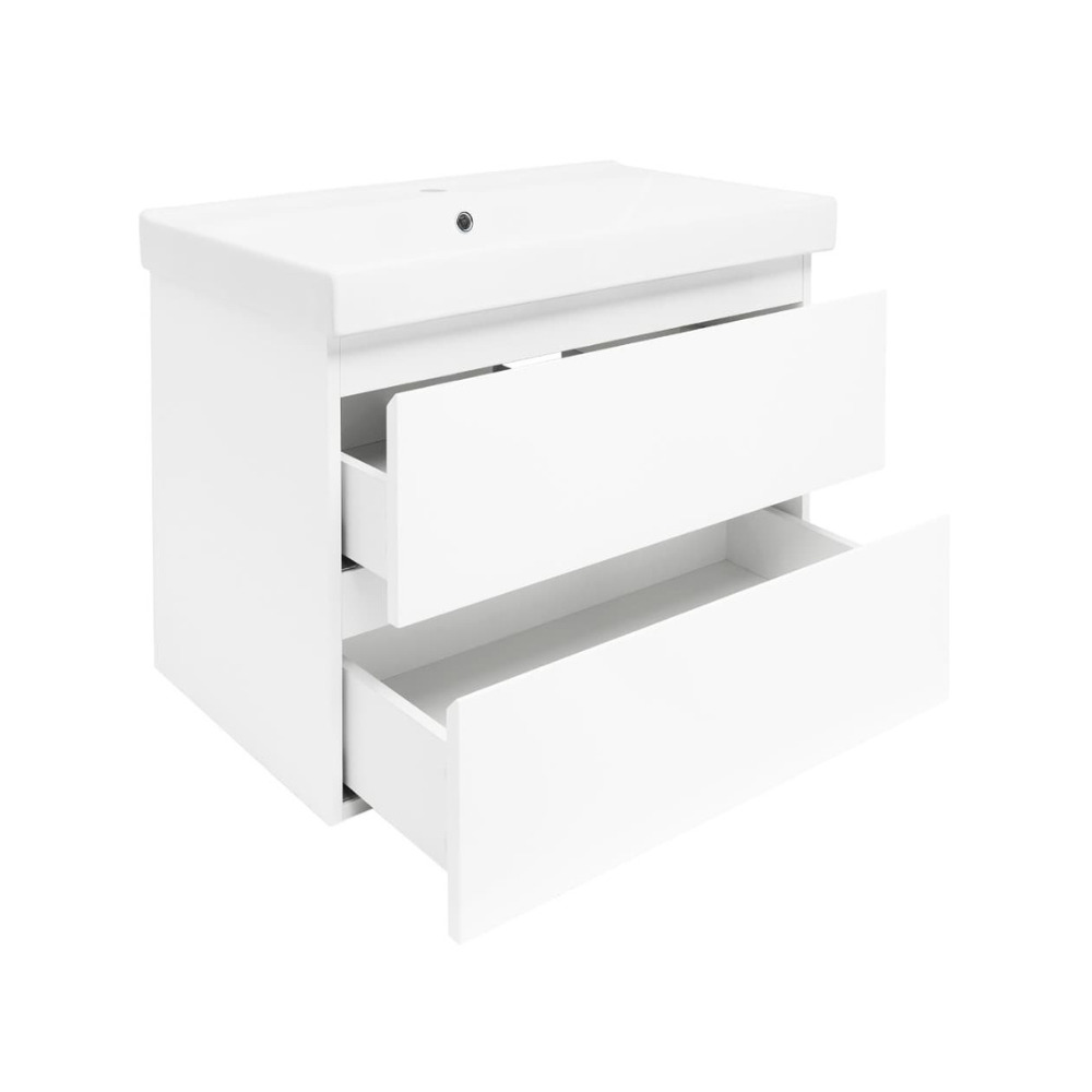B-Way 79x50x45 cm meuble de salle de bain suspendu 2 tiroirs avec lavabo en céramique, blanc brillant (BWAY280WU1BI)