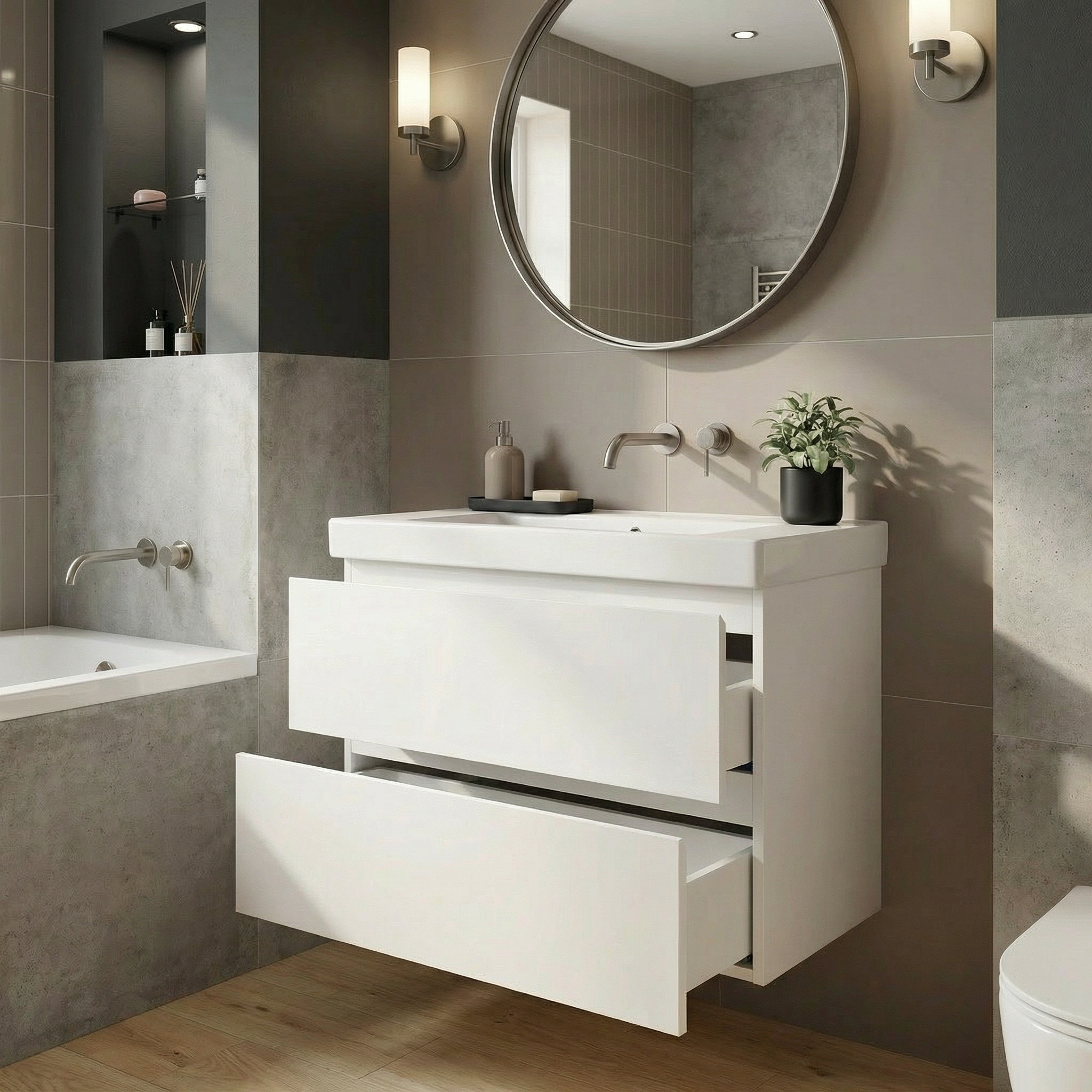 Type de produit : meuble de salle de bain suspendu avec lavabo intégré