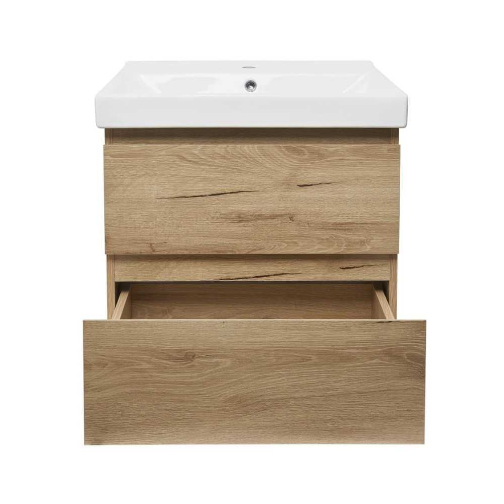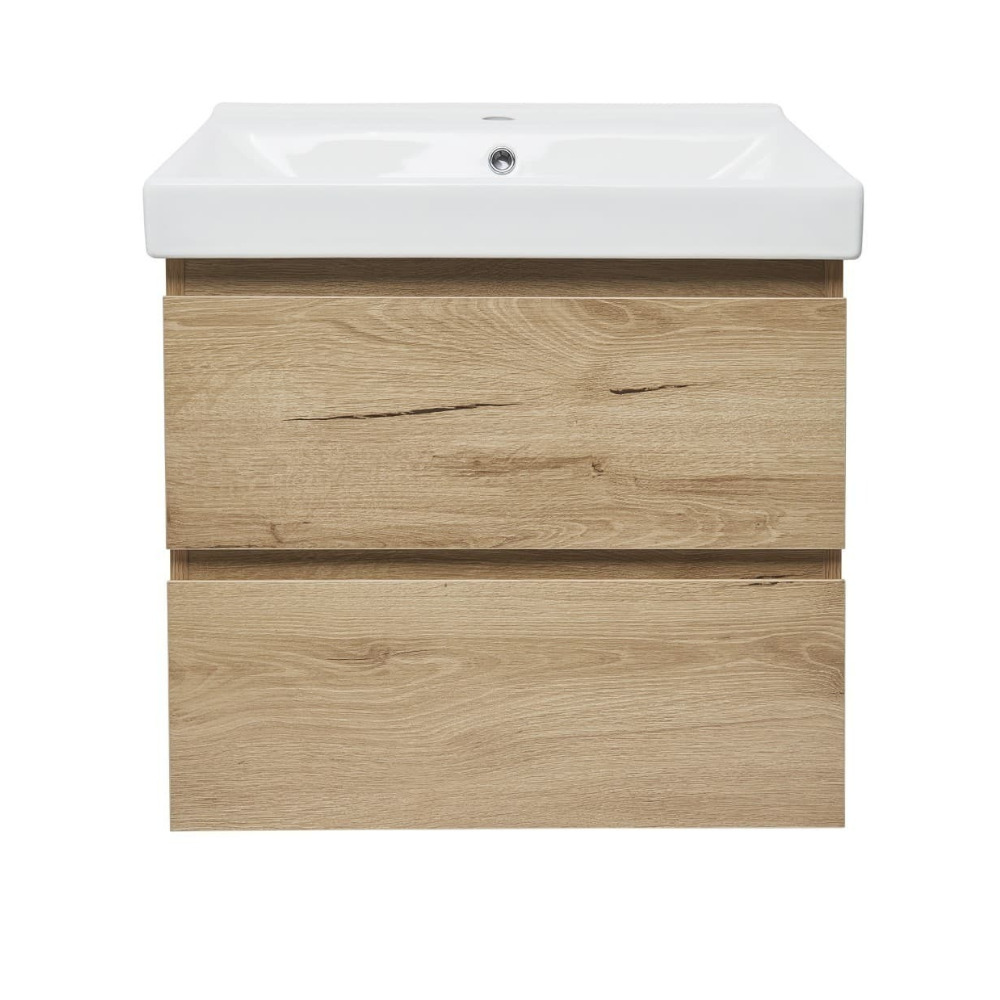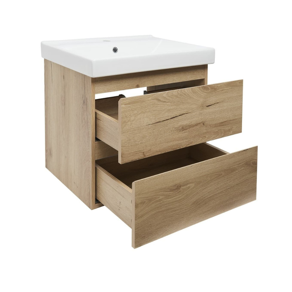 B-Way 59x50x45 cm meuble de salle de bain suspendu 2 tiroirs avec lavabo en céramique, chêne mat (BWAY260OAKUU1)