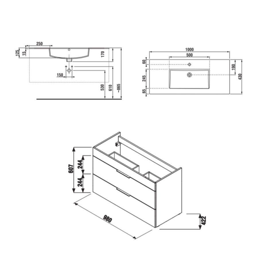 Caractéristiques du Meuble de salle de bain blanc 2 tiroirs 98x42.2x62.2cm + Lavabo en céramique blanche et trop plein, Jika Cube (H4536521763001) :