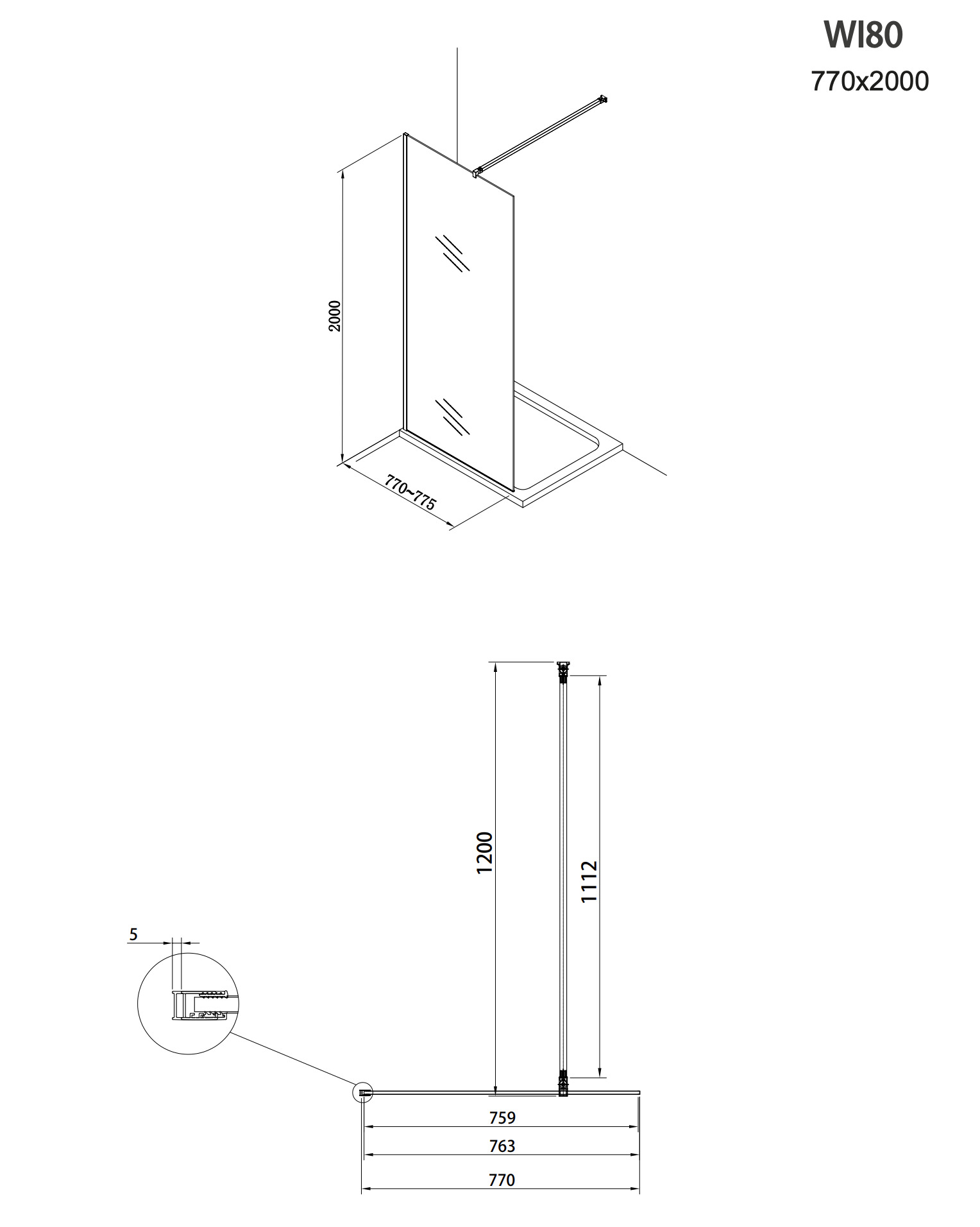 - Epaisseur de la paroi fixe : 8 mm
