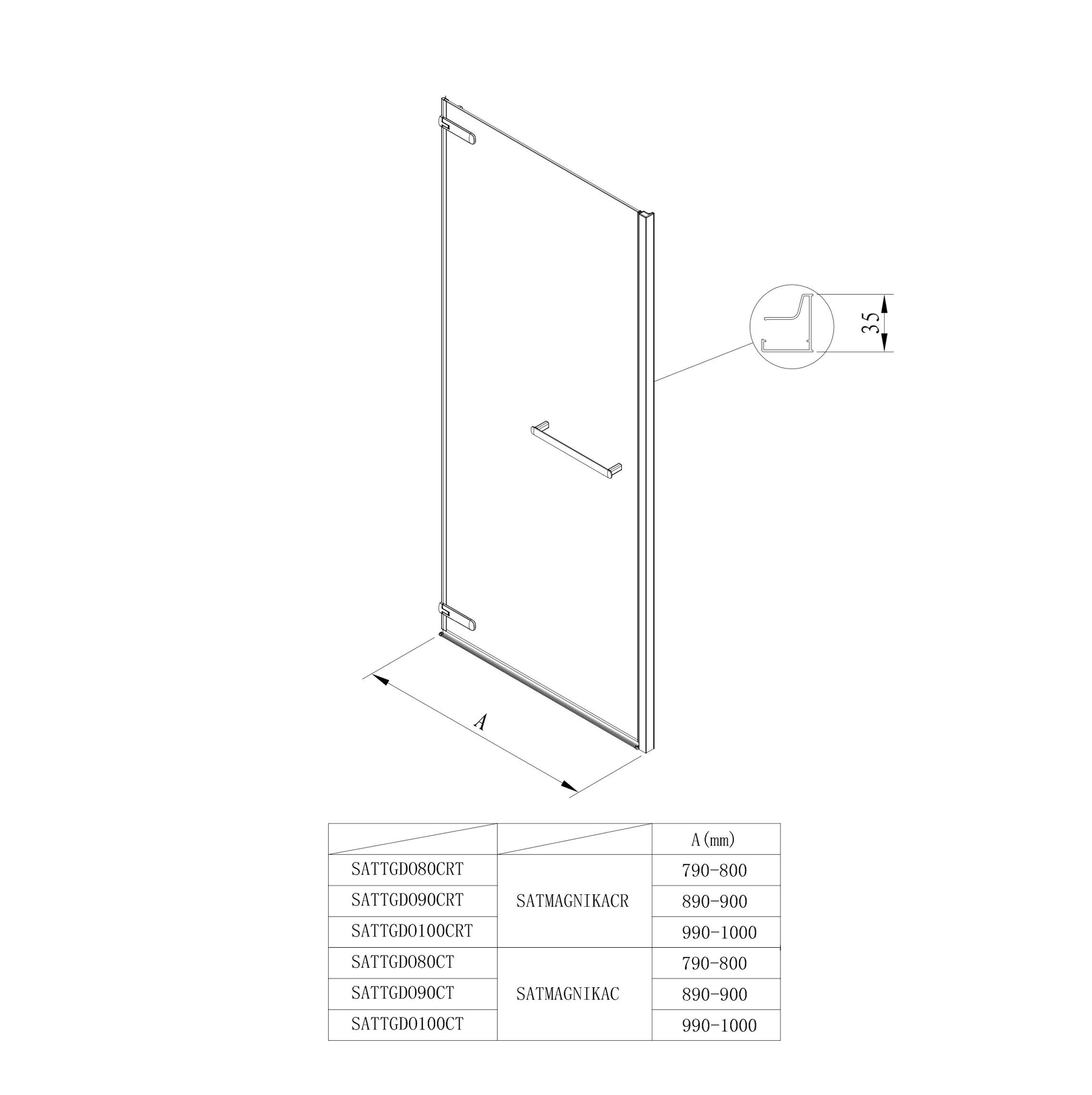 Swiss Aqua Technologies TGD NEW Porte de douche battante 80x200cm (SATTGDO80CT) :