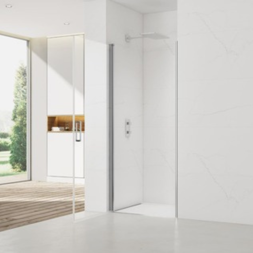 - Swiss Aqua Technologies Fusion by Siko Porte de douche 90x196 cm transparente Easy Clean, ouverture à pivot, chrome (SATFUD90CRT)