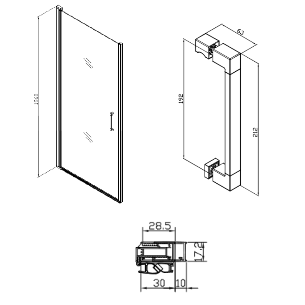 Caractéristiques du Set Porte de douche 90x196 cm transparente Easy Clean + Profilé pour paroi de douche + Poignée pour porte de douche (SATFUD90NIKA):