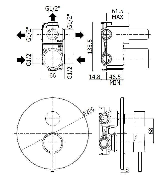 Paffoni Mitigeur encastré 3 sorties, noir mat (LIG019NO)