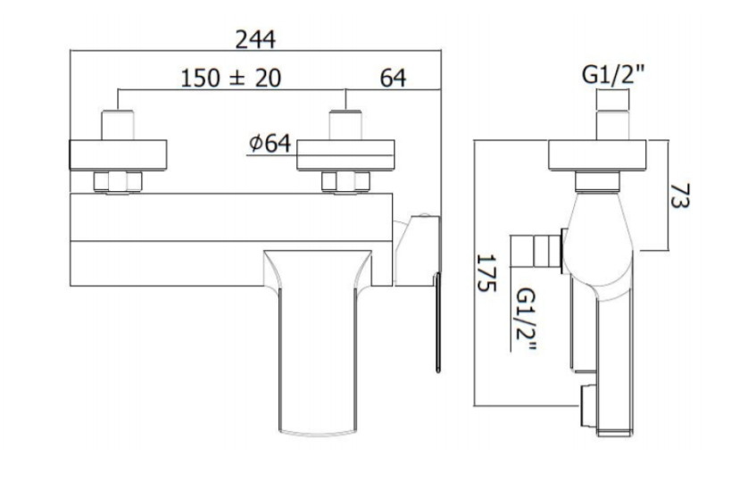 Caractéristiques du Set mitigeur bain/douche mécanique + Douchette 1 jet + Flexible 1,5m, Noir mat, Swiss Aqua Technologies by Paffoni B-Way (SATBSBW222-SET2) :