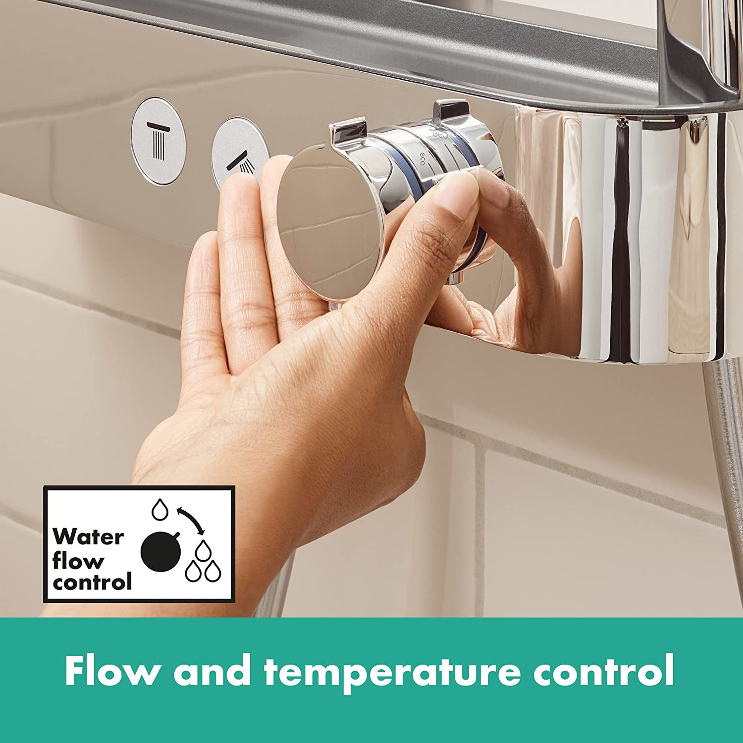 - Hansgrohe ShowerTablet Select Mitigeur thermostatique bain/douche 400 avec tablette et bec déverseur rotatif, Chrome (24340000)