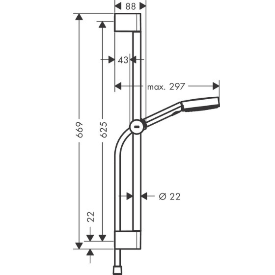 - Diamètre de la barre de douche: 22 mm