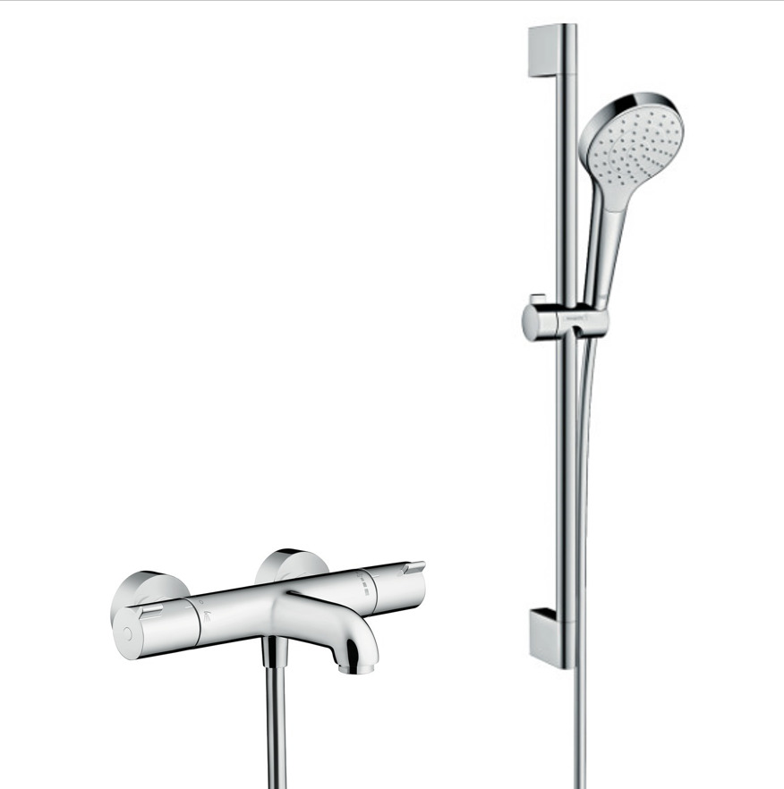 Hansgrohe Set de douche Croma Select S 110 1jet / Unica'Crometta 0,65m + Mitigeur thermostatique Bain douche, Chrome (13201000-Crometta3)
