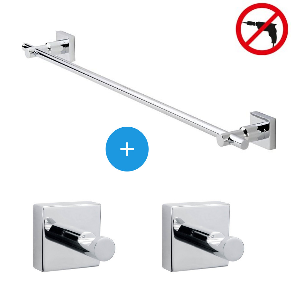 Caractéristiques du Set Barre porte-serviette murale + 2 crochets porte-serviette, pose facile sans perçage, Chrome, Tesa Hukk (40250-TRIOTESA2) :