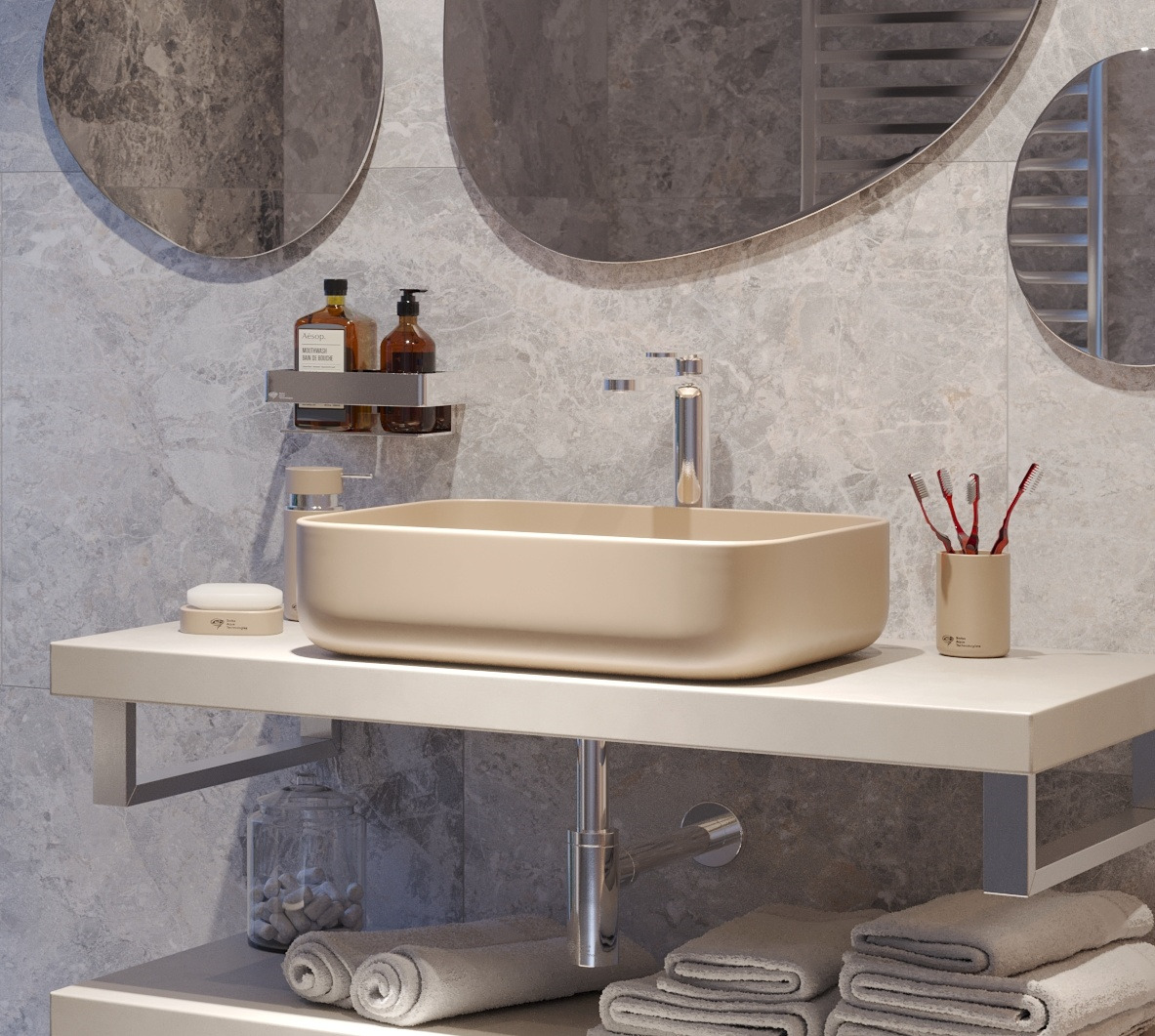 - Swiss Aqua Technologies Infinitio Porte savon en céramique, Beige mat (SATDINFI39BE)