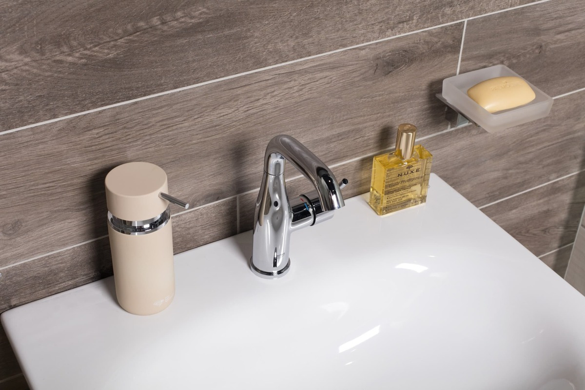 - Swiss Aqua Technologies Infinitio Distributeur de savon liquide, Marron mat (SATDINFI99BE)