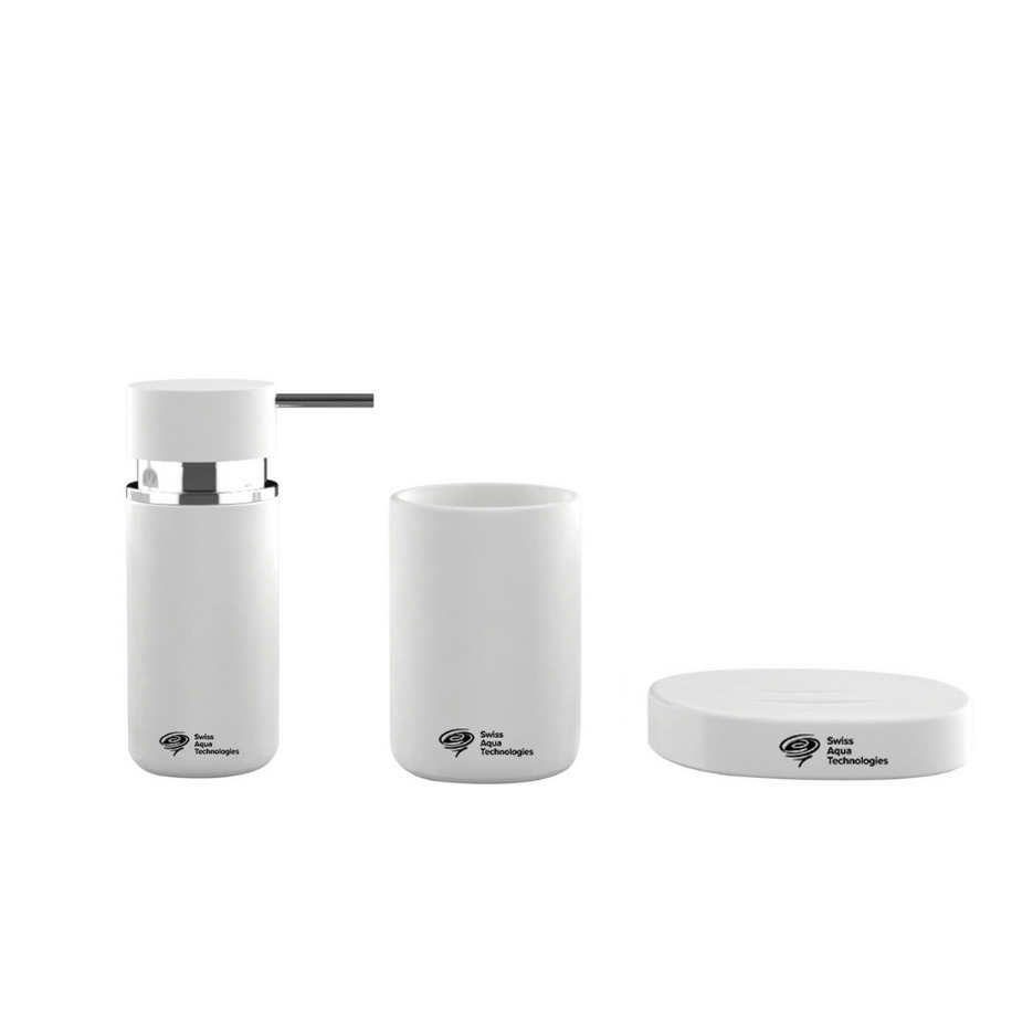 Swiss Aqua Technologies Set d'accessoires Distributeur de savon + Porte savon + Gobelet, En céramique, Blanc mat (PackSAT-BlancMat)
