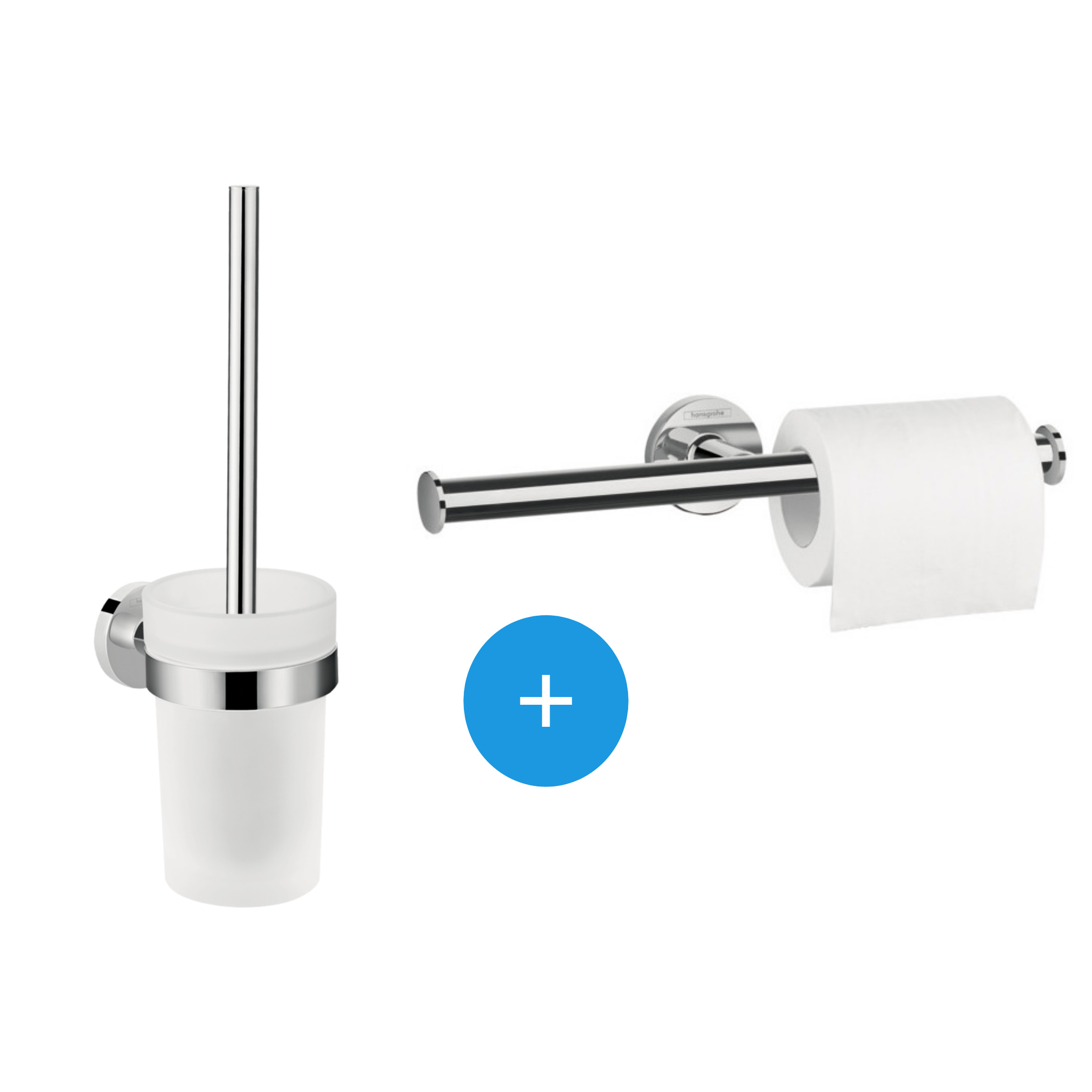 Le pack brosse WC + support de rouleau double, Chrome Hansgrohe Logis Universal (41722000-DUOLOGIS2) est composé de :