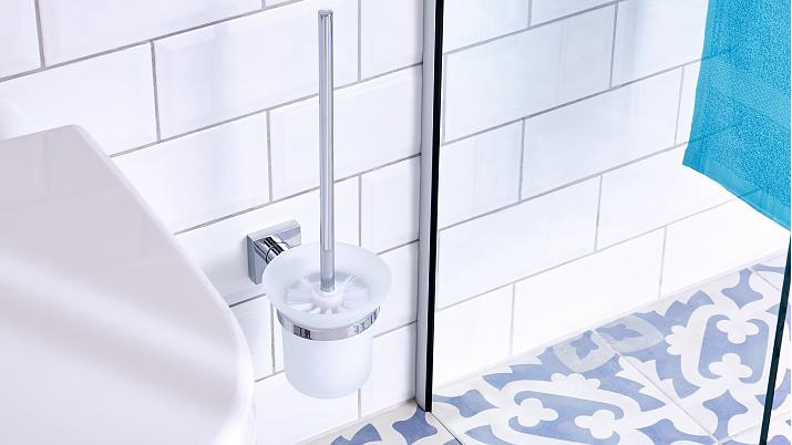 - Support mural brosse WC avec technologie tesa® Power.Kit brevetée (solution de fixation complète)