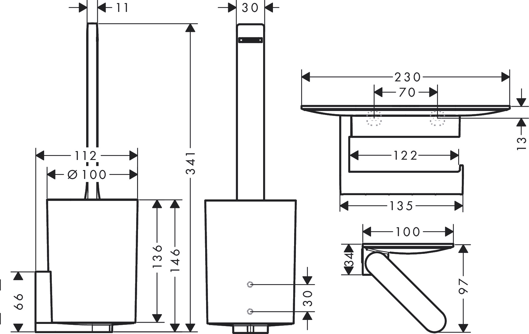 Caractéristiques de l'Ensemble d'accessoires pour les toilettes, Blanc mat, Hansgrohe WallStoris (27969700) :
