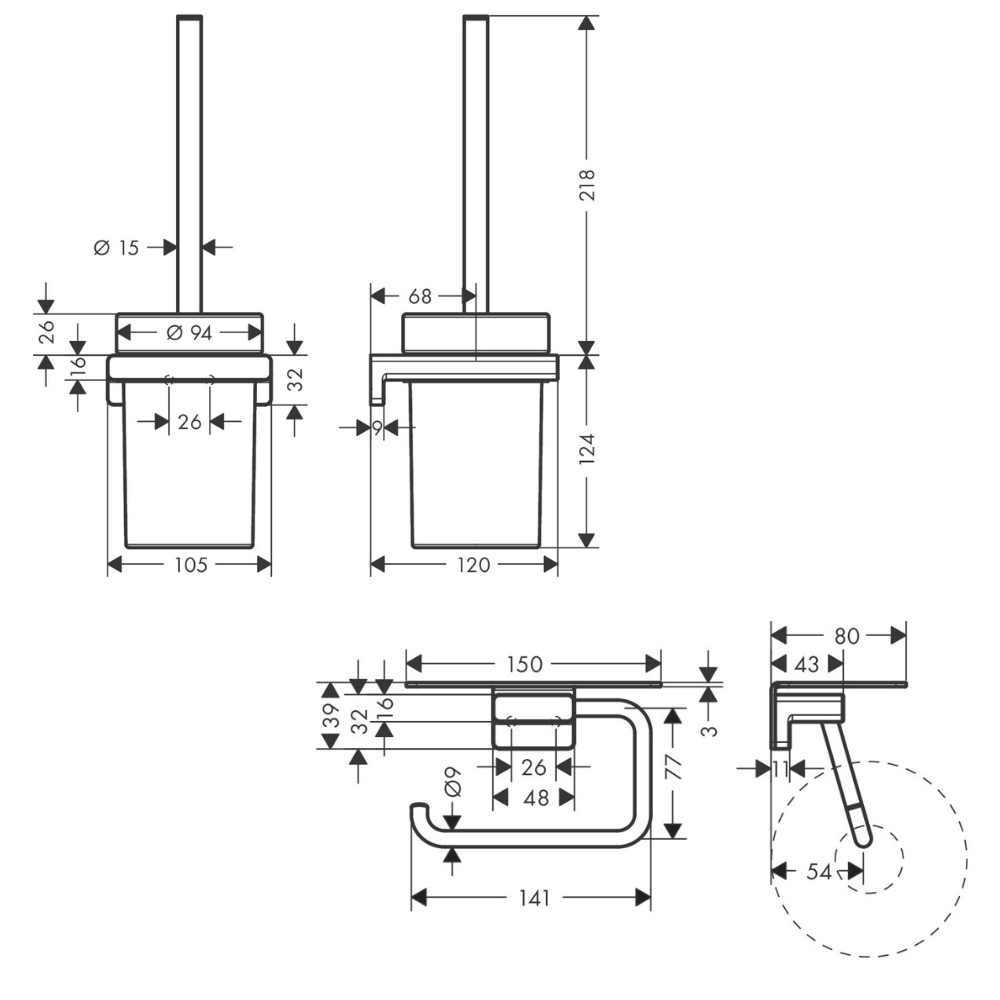 Caractéristiques du Set Brosse de toilette murale + Porte-papier toilette mural avec tablette, Noir mat, Hansgrohe AddStoris (41752670-Addstoris) :