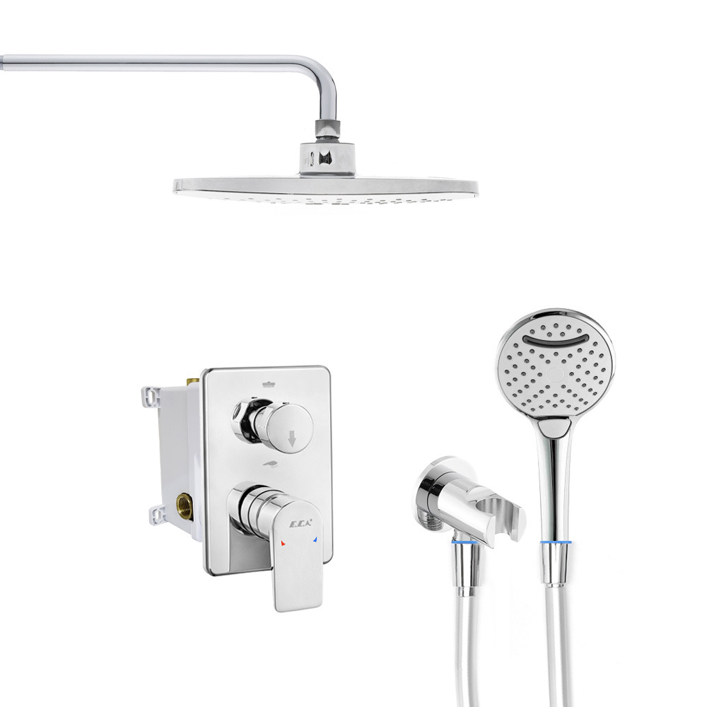 E.C.A Set de douche tout en 1 avec Douche de tête XXL 255mm + Douchette à main 3 jets, Chrome (102167213EX-SET1)