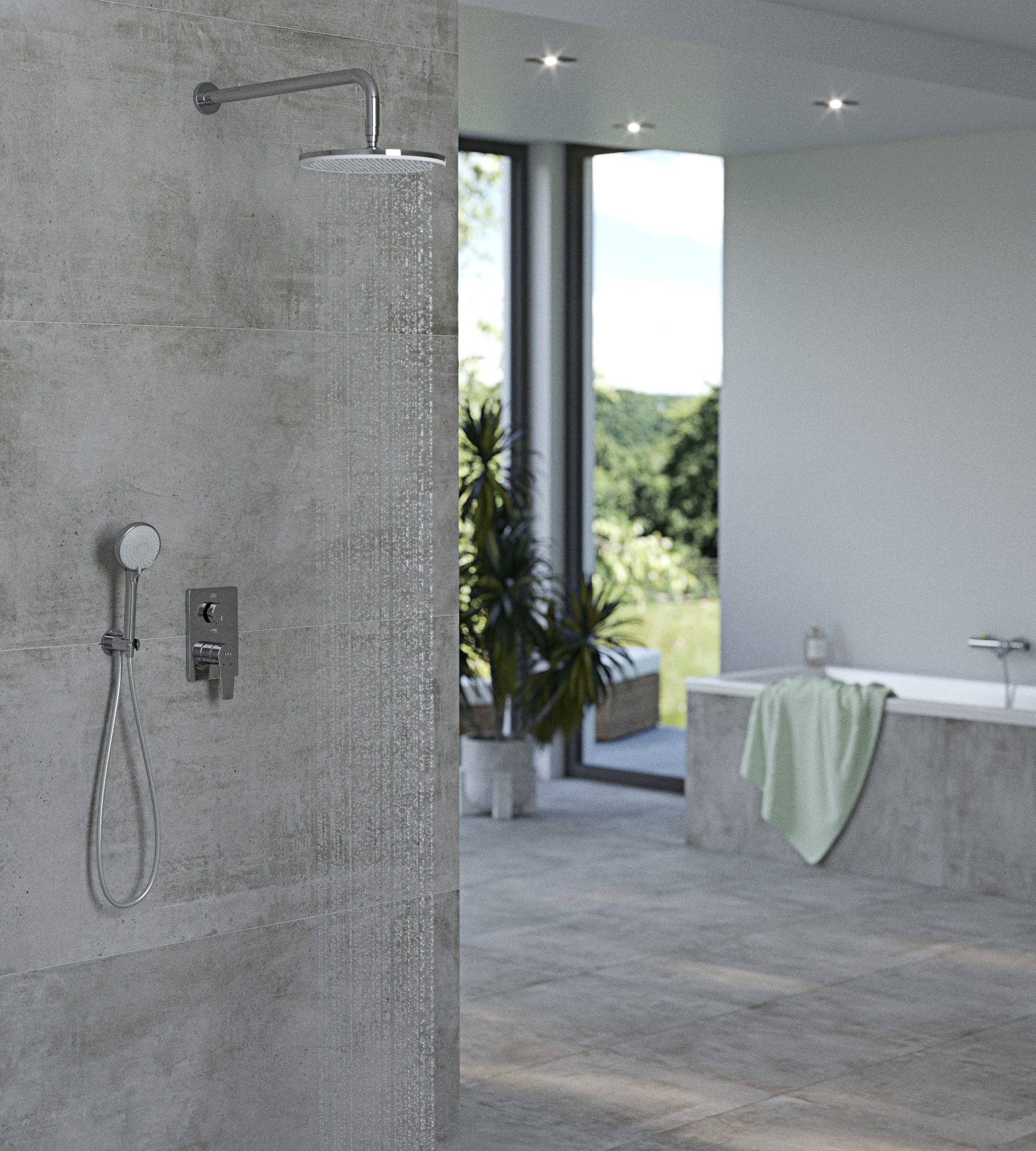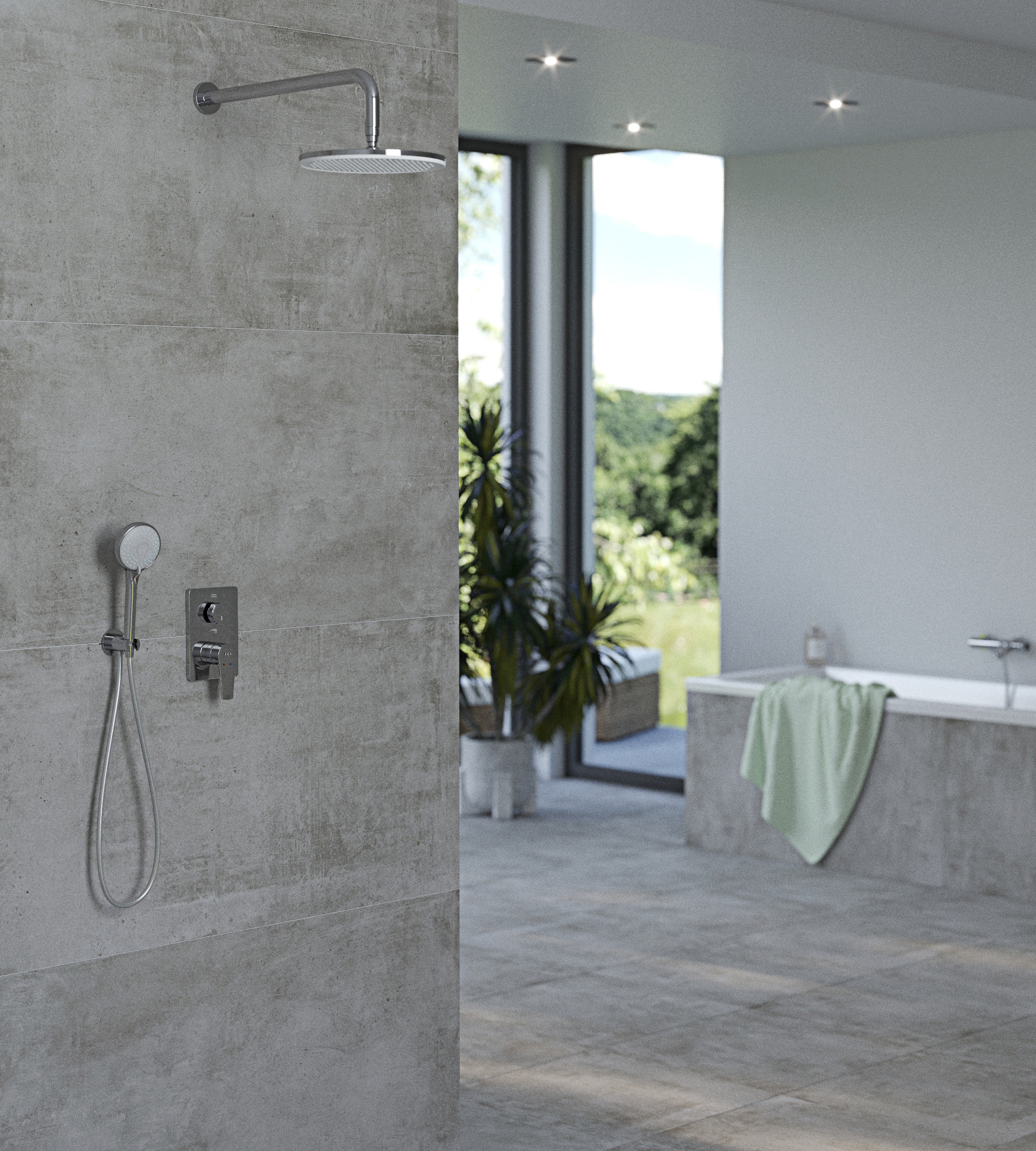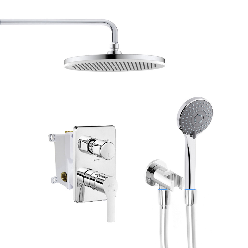 E.C.A Set de douche tout en 1 avec Douche de tête XXL 255mm + Douchette à main 3 jets, Chrome (102167213EX-SET1)