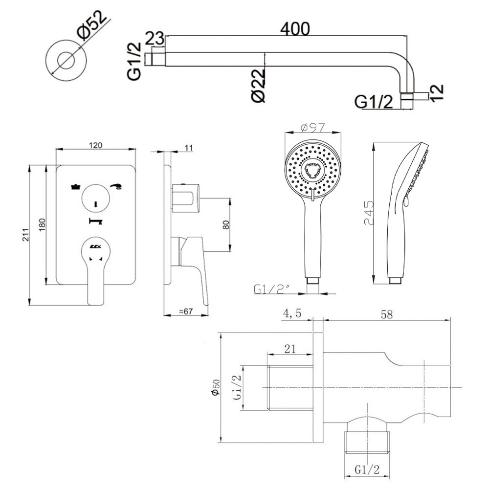 - Diamètre douche de tête (mm):22.5