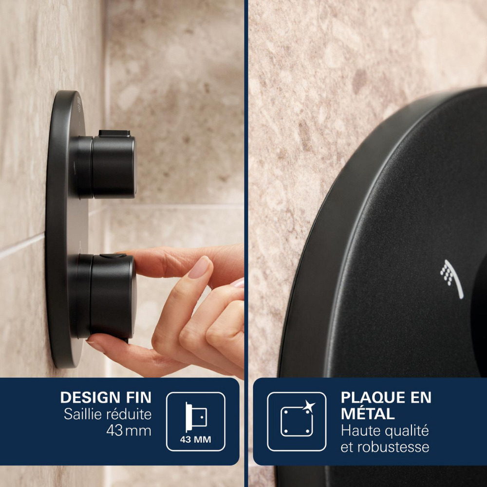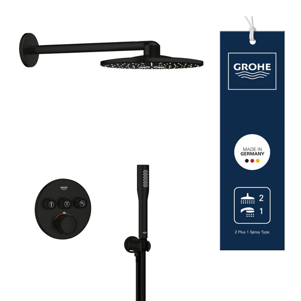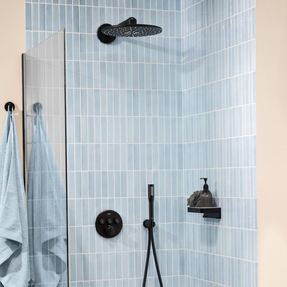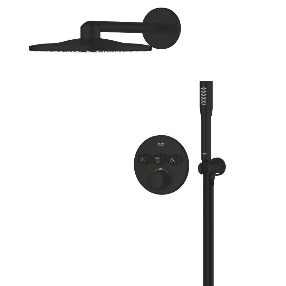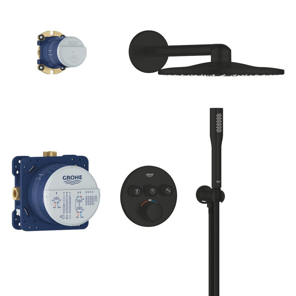 Caractéristiques du set de douche encastré 2 jets avec mitigeur thermostatique, tête ronde Ø 31 cm, Grohe Precision SmartControl, noir mat (348742430) :