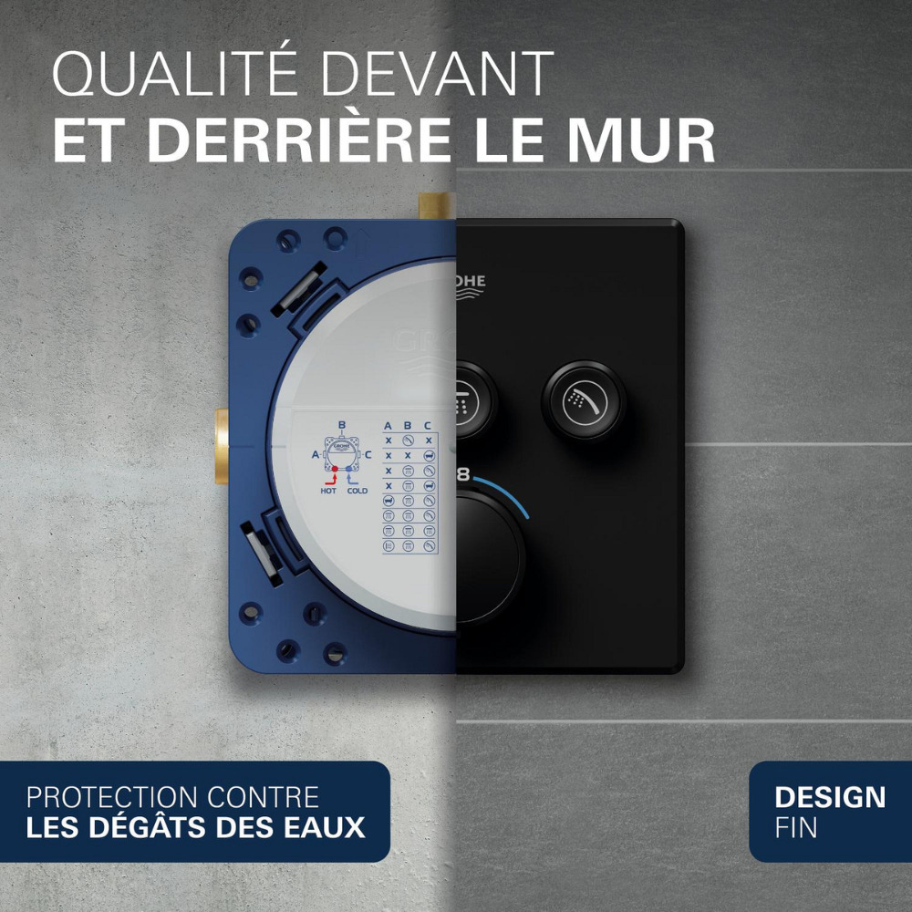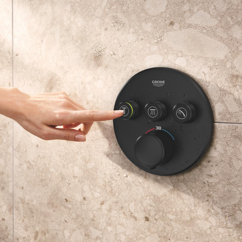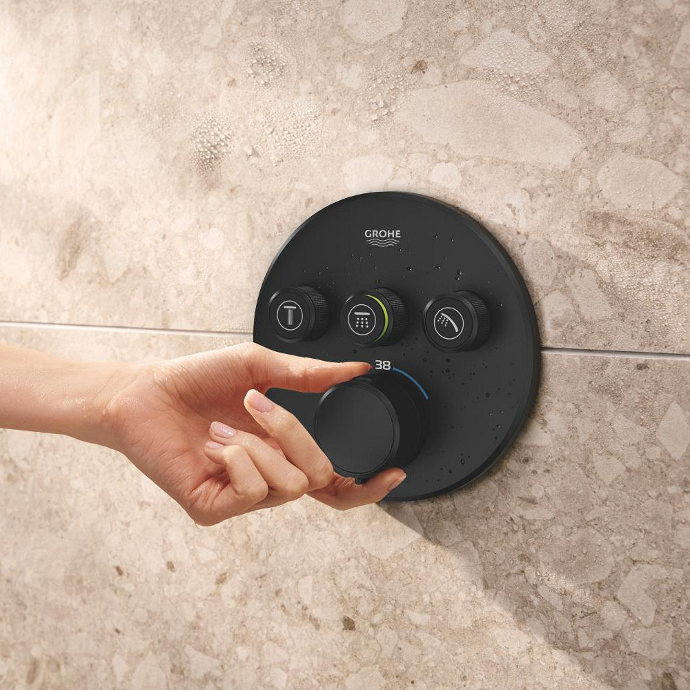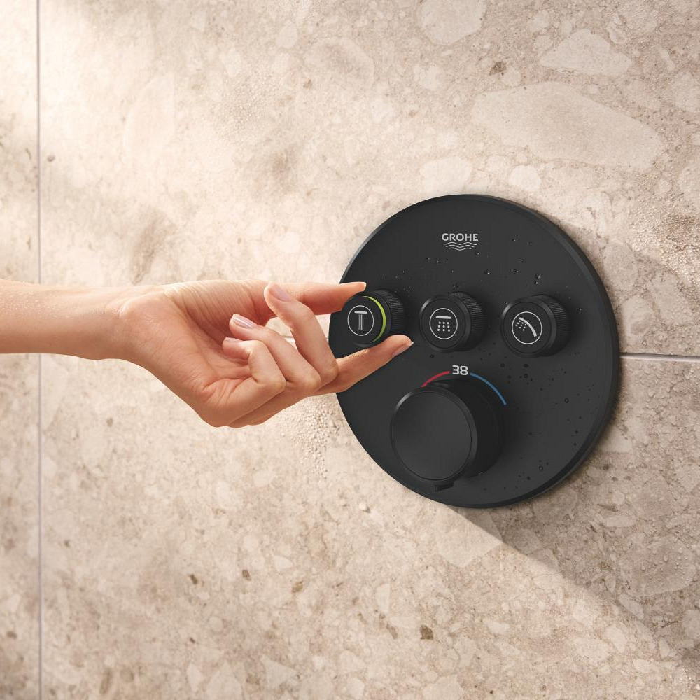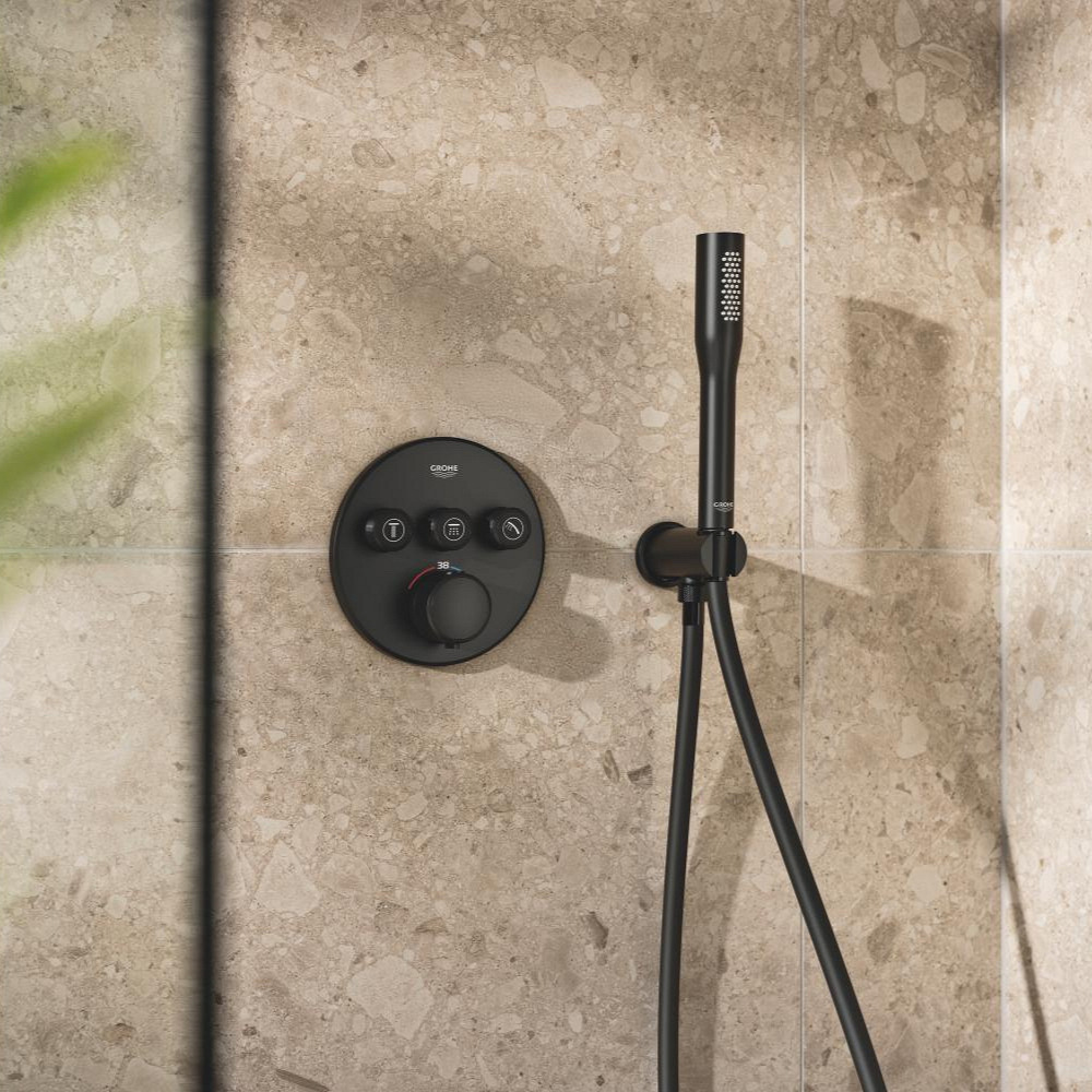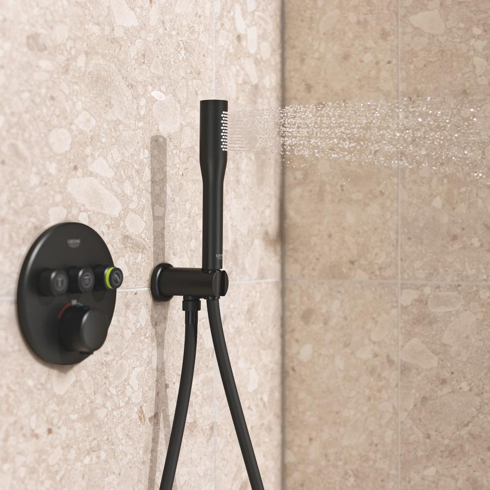 Caractéristiques du set de douche encastré 2 jets avec mitigeur thermostatique, tête ronde Ø 31 cm, Grohe Precision SmartControl, noir mat (348742430) :