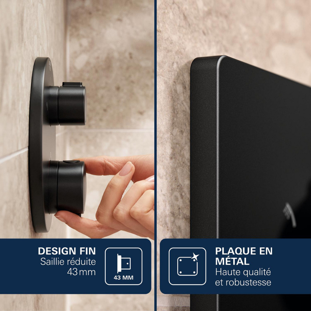 Precision SmartControl set de douche encastré 2 jets avec mitigeur thermostatique, tête carrée 31x31 cm, noir mat (348752430)