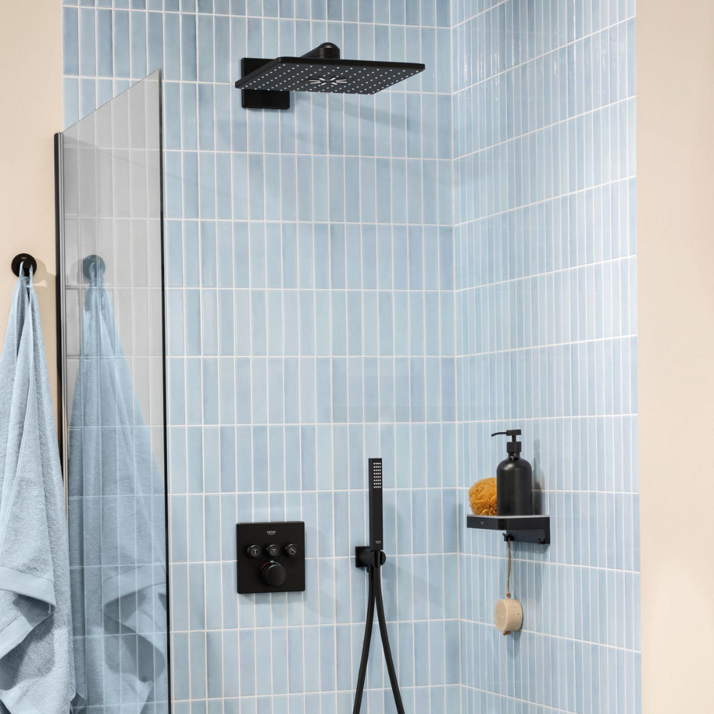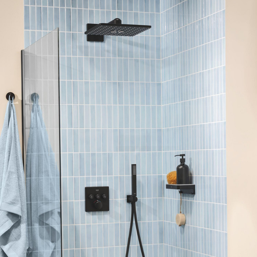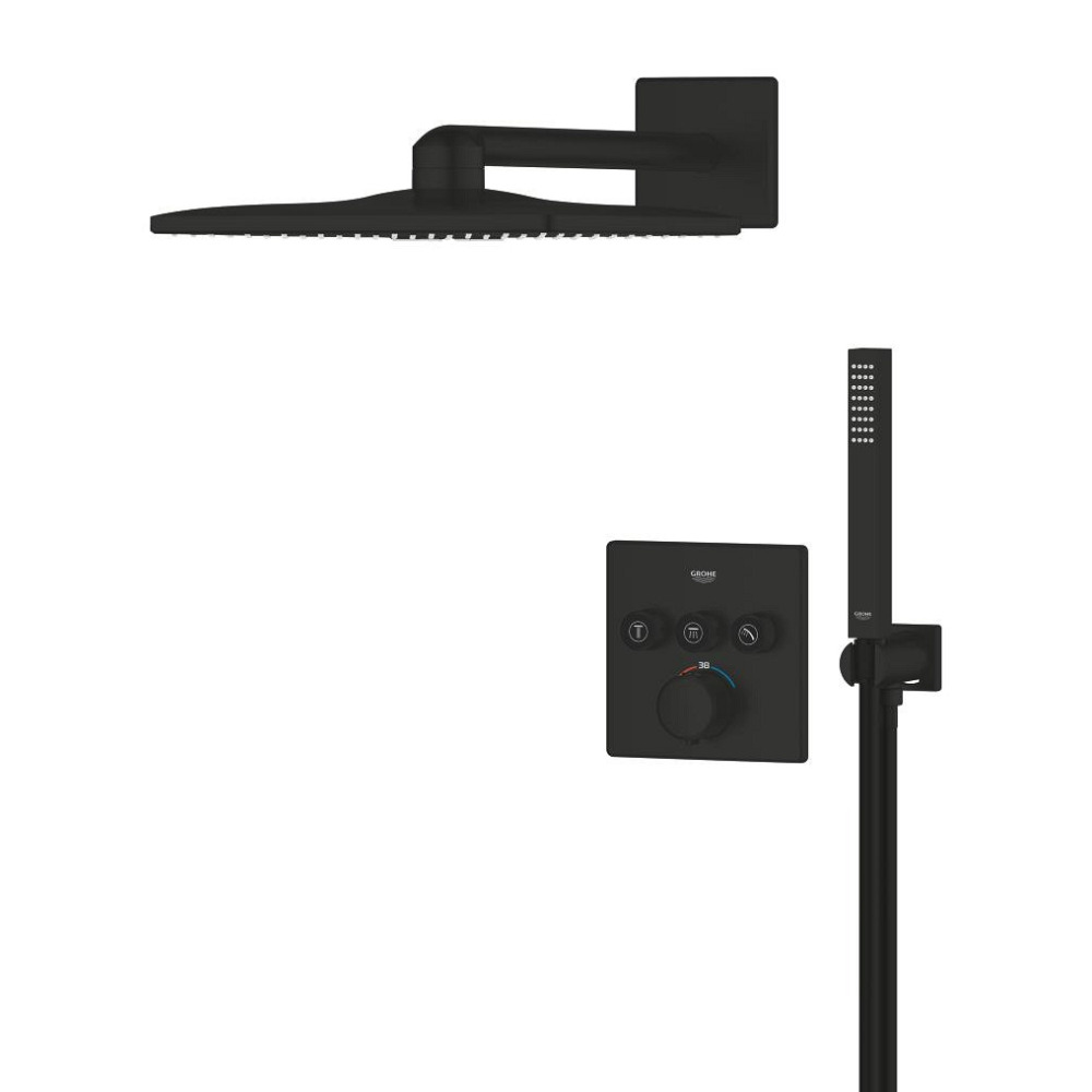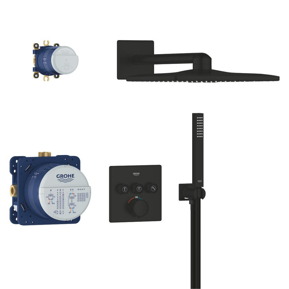 Caractéristiques du set de douche encastré 2 jets avec mitigeur thermostatique, tête carrée 31x31 cm, Grohe Precision SmartControl, noir mat (348752430) :