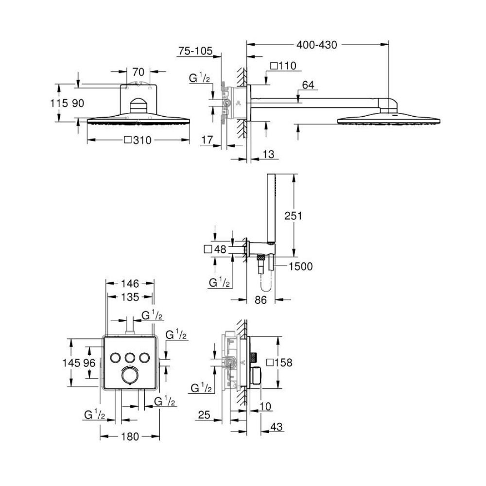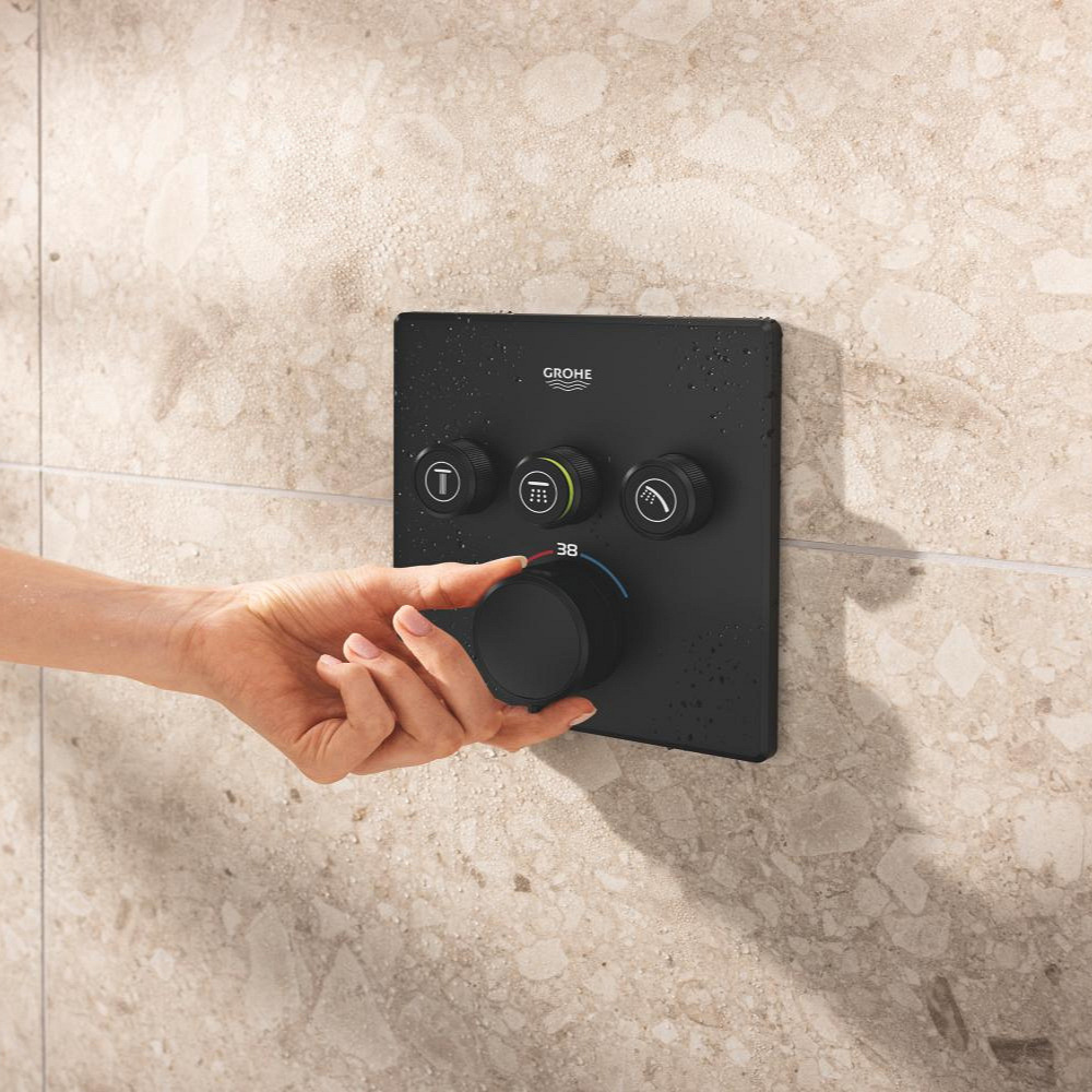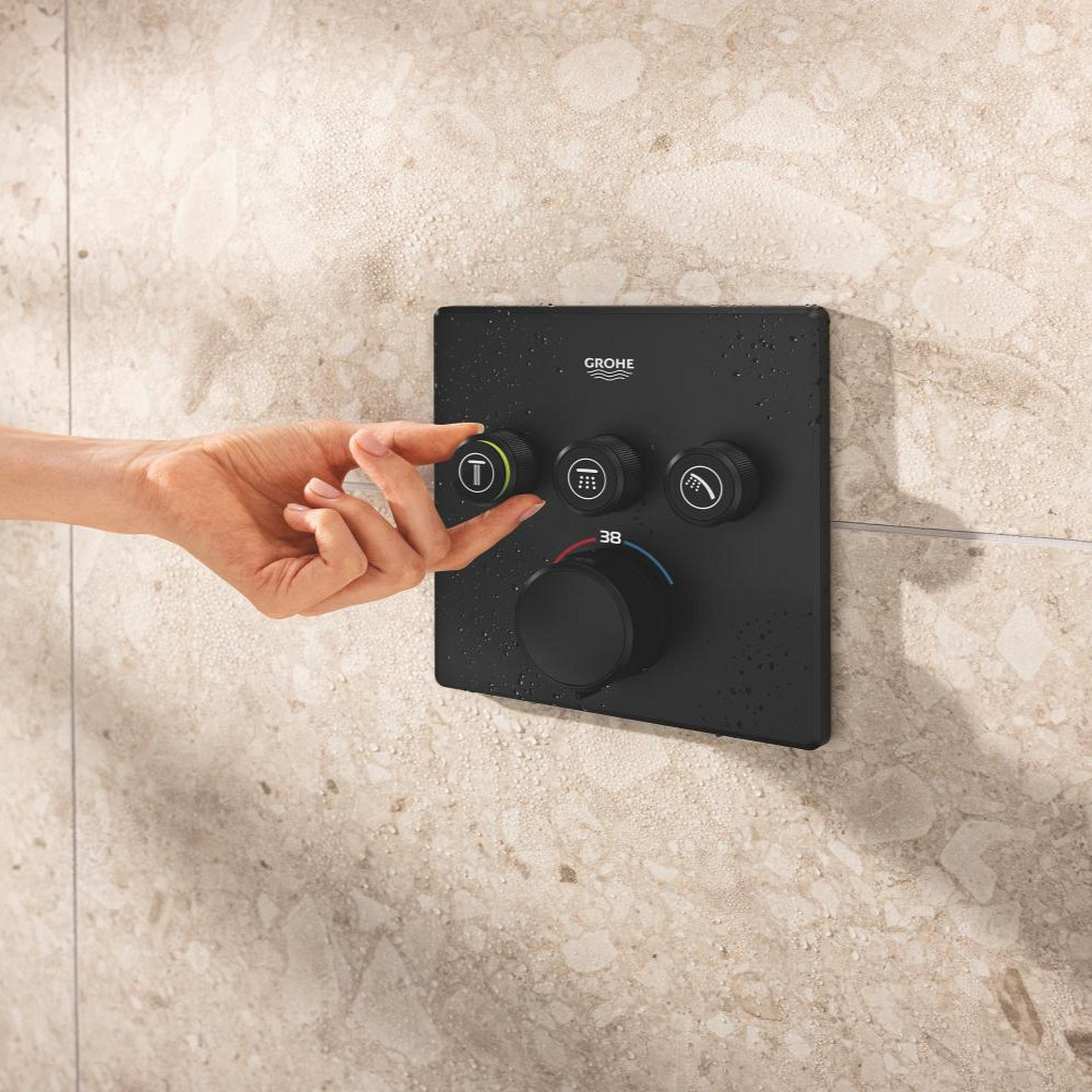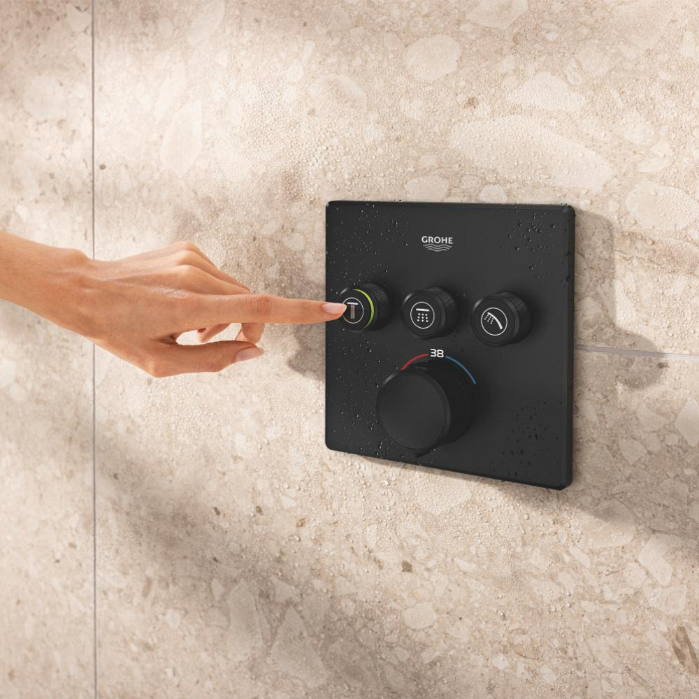 Caractéristiques du set de douche encastré 2 jets avec mitigeur thermostatique, tête carrée 31x31 cm, Grohe Precision SmartControl, noir mat (348752430) :