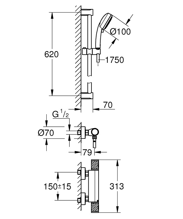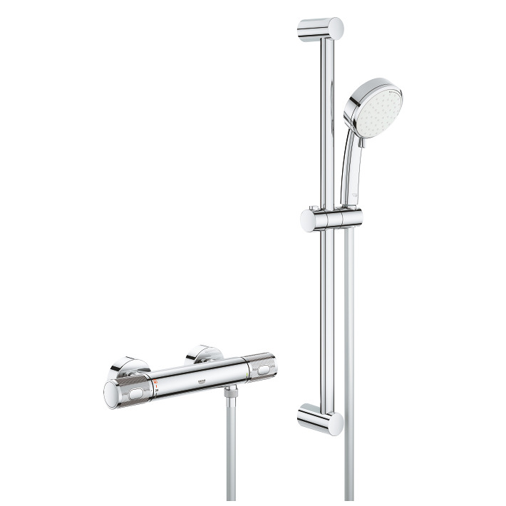 Grohe Grohtherm 1000 performance, mitigeur thermostatique douche 1/2" avec ensemble de douche, chrome (34787000)