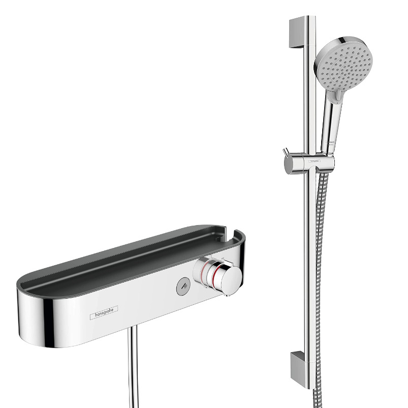 Laissez-vous séduire par ce Set Mitigeur thermostatique douche ShowerTablet Select + Douchette 105mm 2 jets + Barre 65cm, Chrome, Hansgrohe Vernis Pulsify (24360000-Vernis-SP).