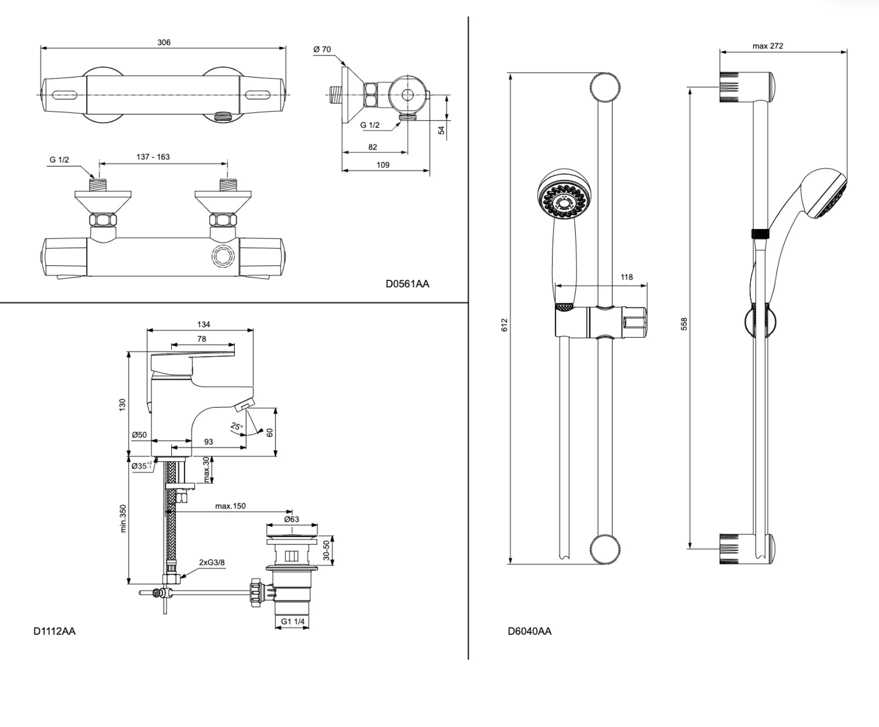 Caractéristiques du Olyos Set Mitigeur thermostatique + Barre de douche 60cm avec Douchette 2 jets + Mitigeur lavabo OFFERT (D2615AA) :